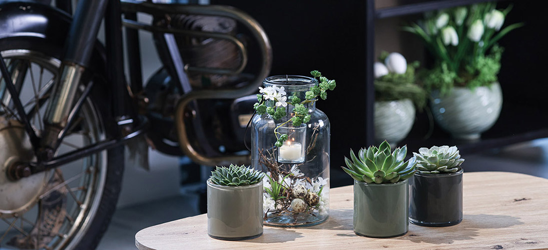 Surfez en toute tranquillité sur notre boutique en ligne richement illustrée. Vous y trouverez certainement tout le nécessaire pour faire de votre décoration florale un événement extraordinaire et merveilleux. En outre, un grand nombre de nos articles décoratifs conviennent comme cadeaux pour vos amis, parents et connaissances à l'occasion d'événements heureux.