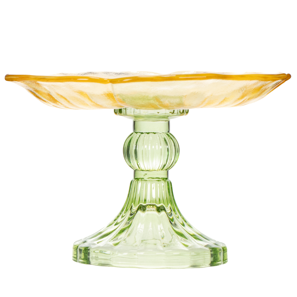 Cette magnifique assiette décorative en verre, montée sur pied, attire tous les regards grâce à son délicat motif floral. Le pied en verre vert transparent met élégamment en valeur les fleurs jaune tendre et confère à l'assiette une impression de légèreté et de fraîcheur. Utilisez-la pour présenter avec style des confiseries, des petits gâteaux ou des pâtisseries délicatement emballés. Son design intemporel s'harmonise aussi bien avec une décoration moderne que rustique. Idéale pour les occasions spéciales telles que les mariages, Pâques ou les anniversaires, ou tout simplement pour sublimer votre table au quotidien.