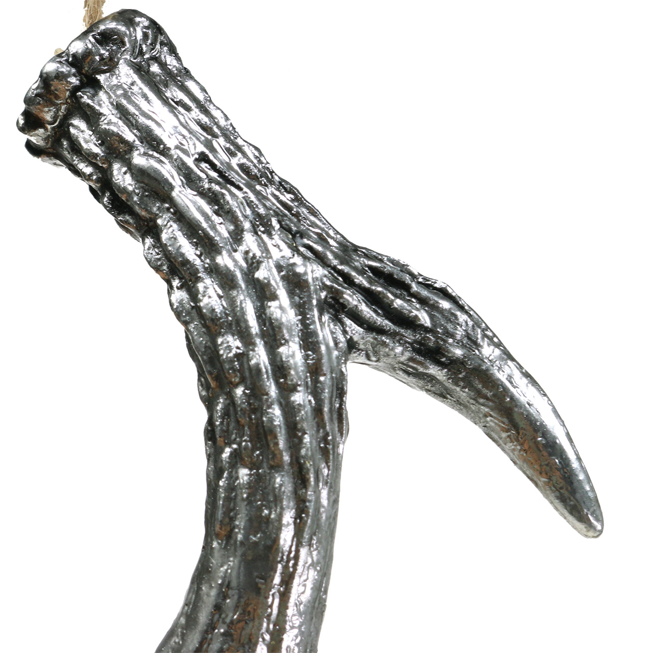Ce bois distinctif de la marque haut de gamme VIANA est un accessoire de style particulièrement rustique. Inspiré de l'original naturel, le déco-dédicacé a reçu une finition argent antique. C’est ainsi que la nature rustique se combine avec les métaux précieux. Un cordon de jute sert de suspension pratique.