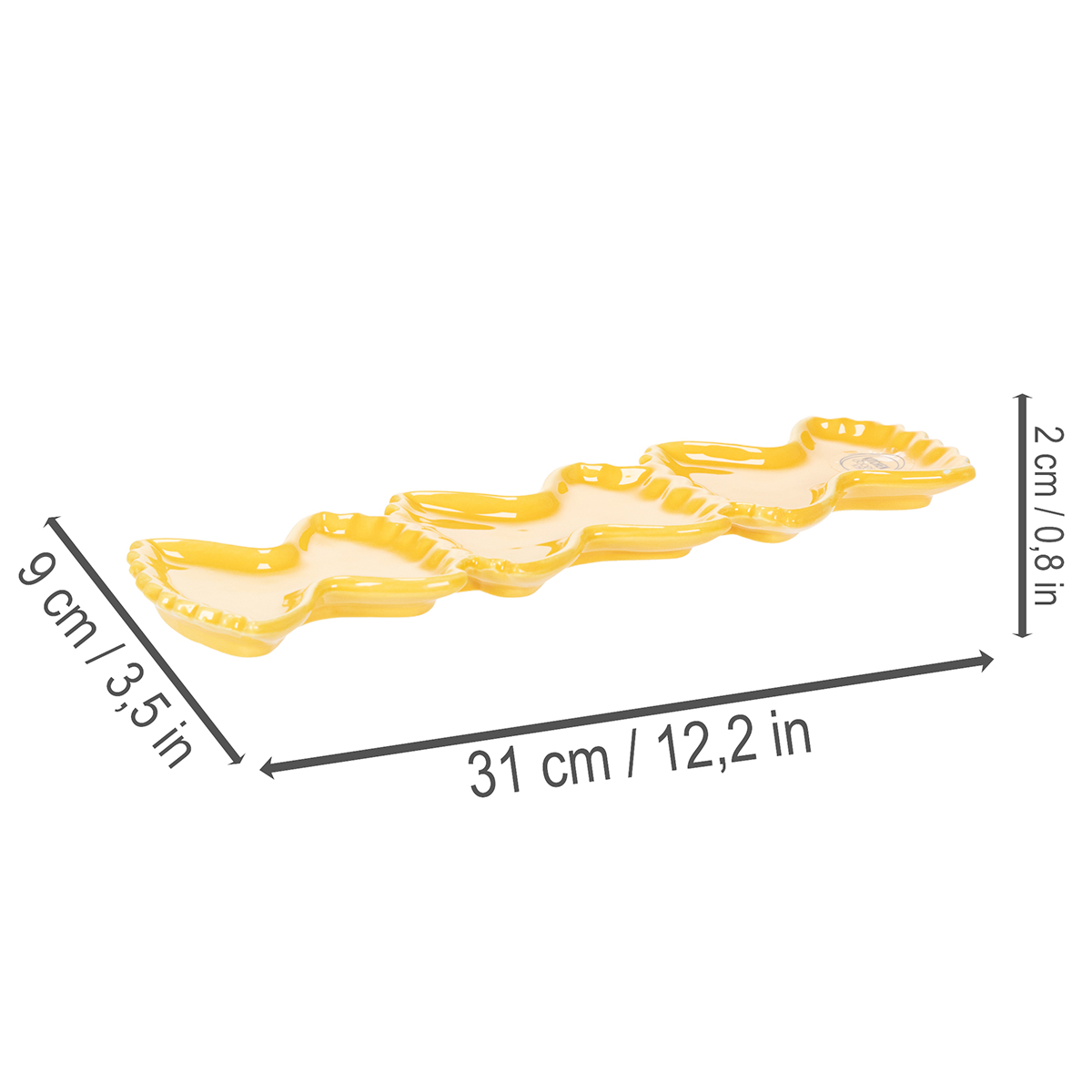 Mesurant 31 cm de long et 9 cm de large, ce plat à trempette en céramique offre un espace généreux pour vos amuse-bouches préférés. Sa forme ludique, évoquant des pâtes, lui confère un charme particulier et en fait un véritable atout pour toute table. Associé à d'autres accessoires jaunes, comme les vases à pâtes de notre collection, il transformera votre table en une harmonie parfaite, idéale pour une ambiance méditerranéenne ou estivale.
