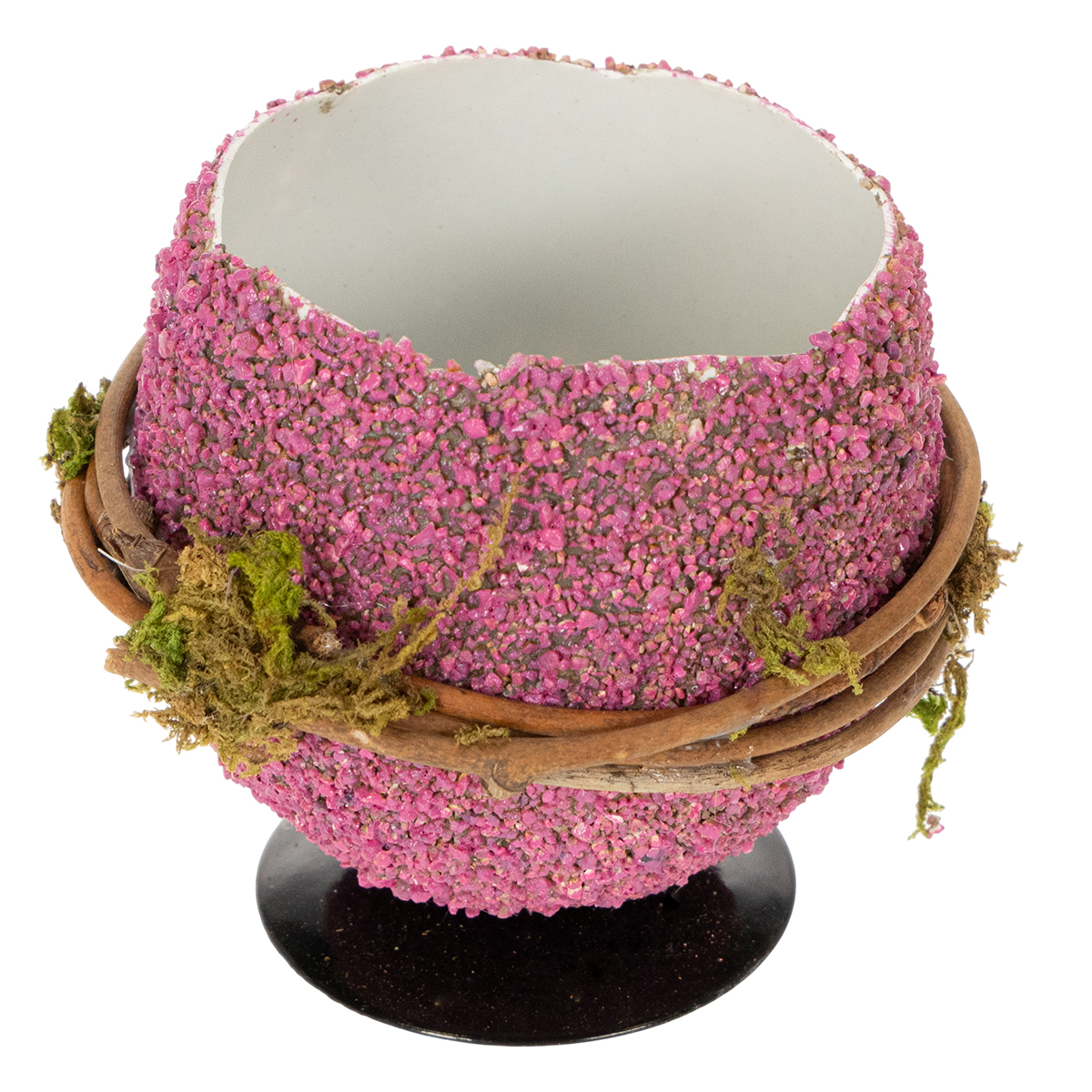 Les teintes variées de violet, rose, rose pâle et vert apportent une touche de gaieté. L'association de matériaux – plastique, mousse et métal – fait de cet œuf un véritable objet décoratif. La couronne de brindilles et de mousse lui confère une allure particulièrement naturelle. Et surtout : vous pouvez personnaliser cet œuf de Pâques à planter avec un petit pot de succulente ou de fraîches fleurs printanières. Laissez libre cours à votre créativité !