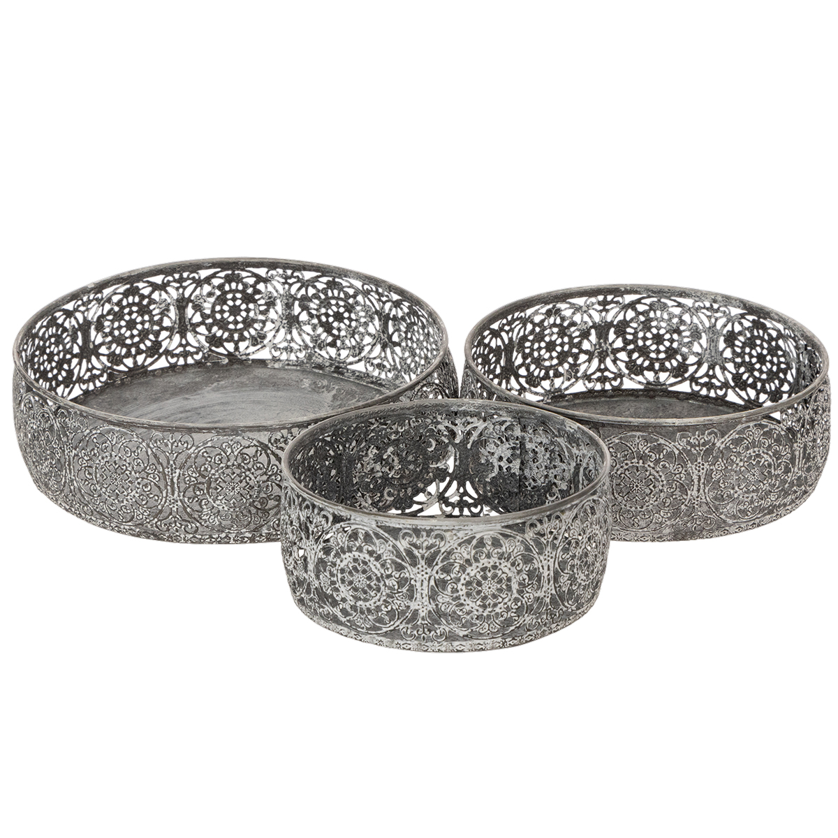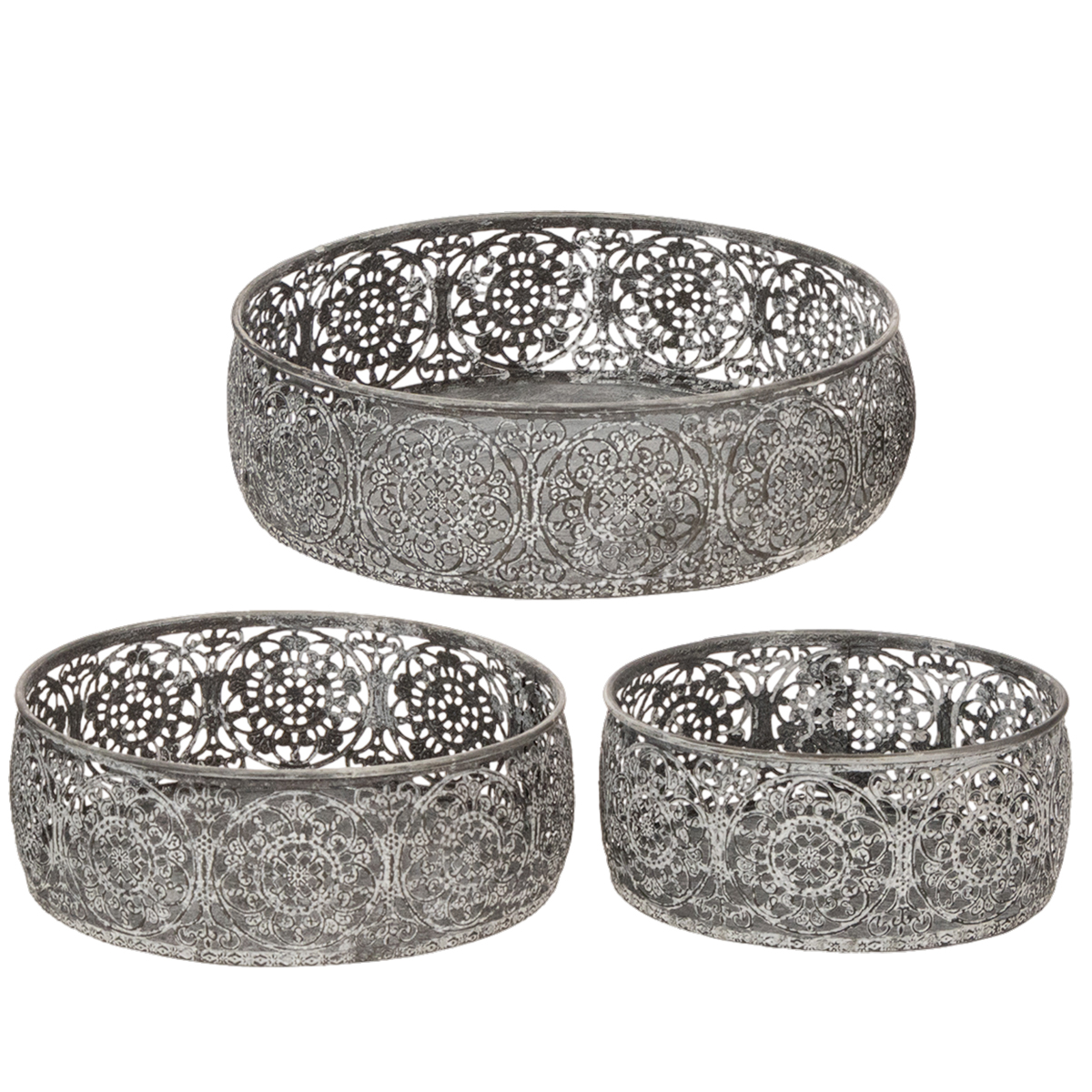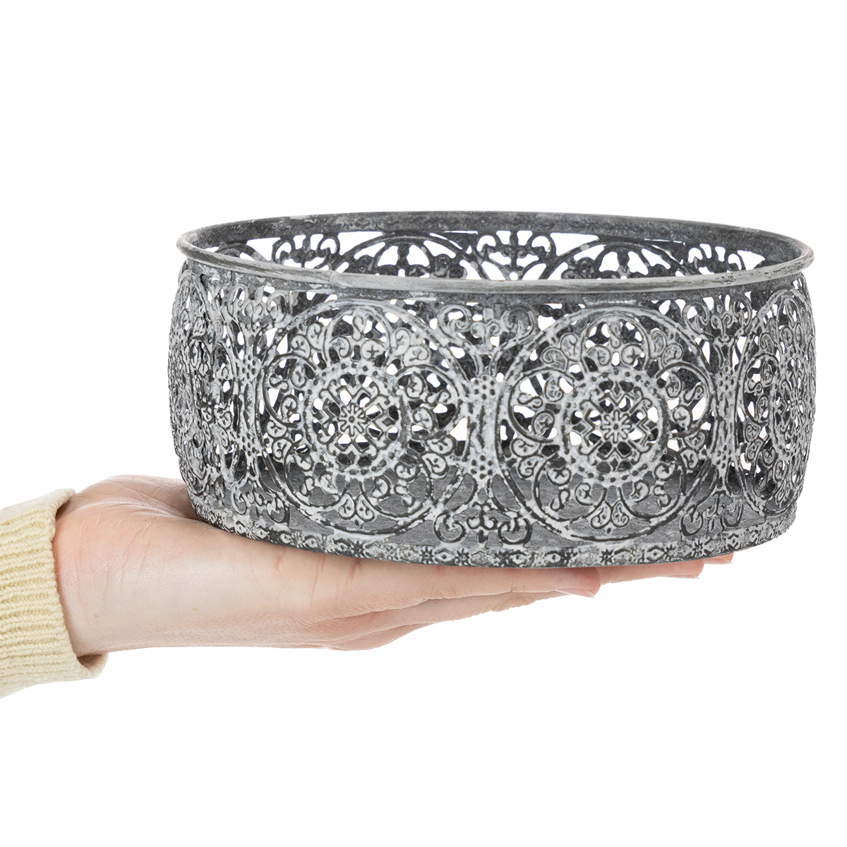 Ornés de motifs floraux, ces bols décoratifs en métal embellissent tables, commodes ou buffets. Les évidements en filigrane créent des décorations enchanteresses à l'extérieur des coques métalliques.