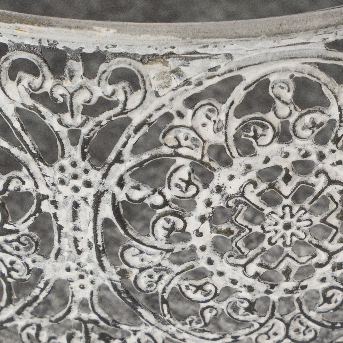 Les motifs floraux et le gris argenté intemporel font du bol décoratif blanc délavé une merveilleuse décoration vintage.