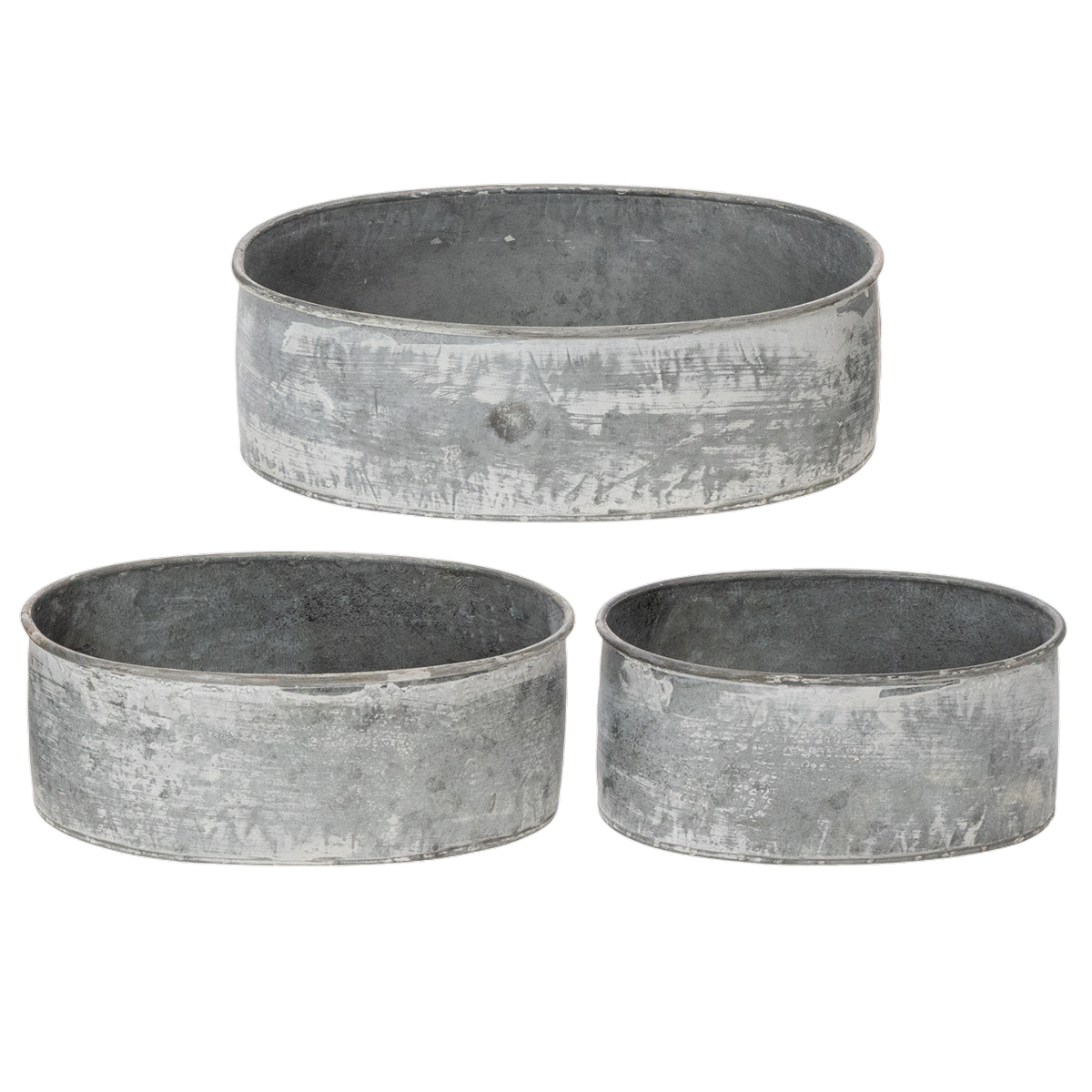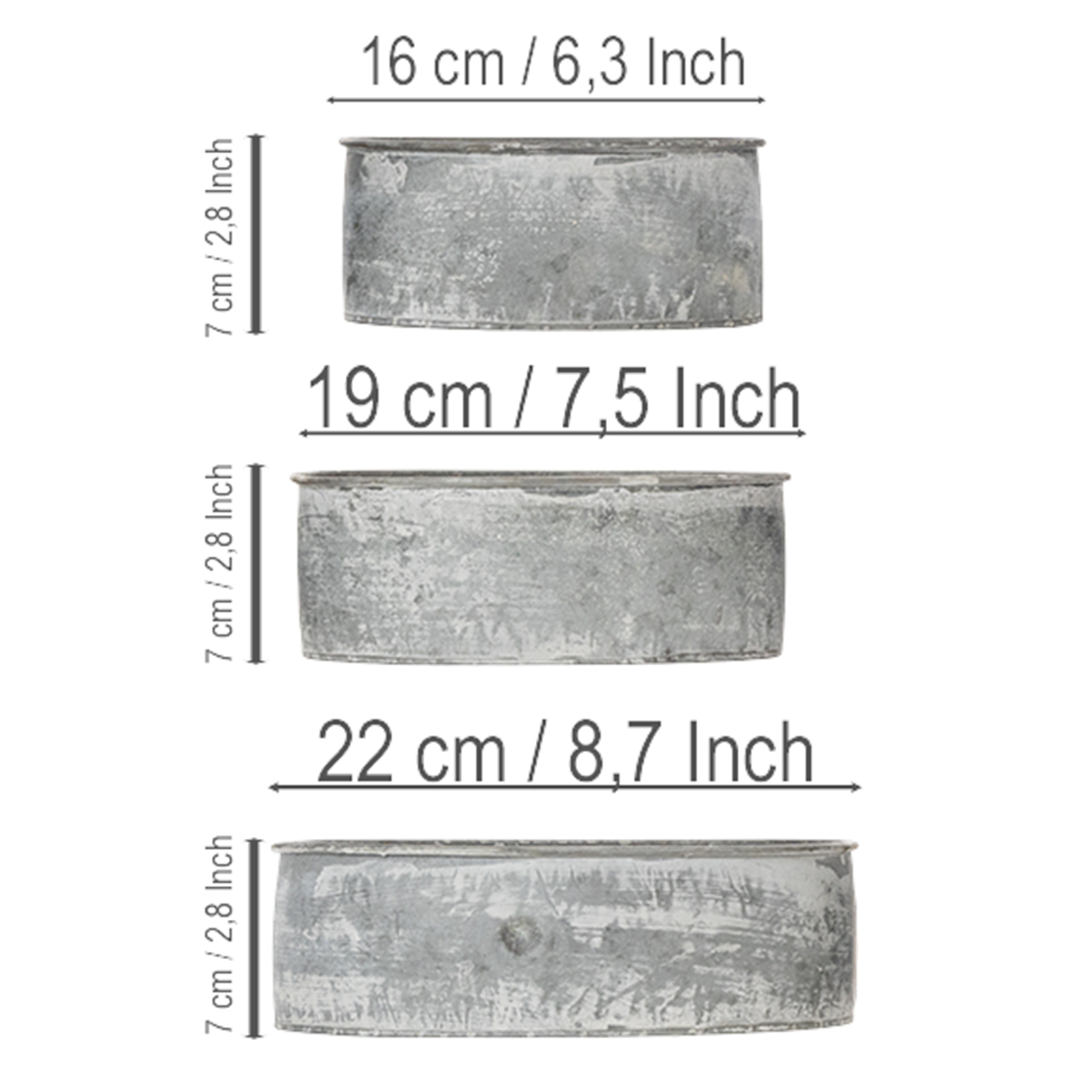 Lavés en gris et blanc intemporels, les trois bols peuvent être utilisés pour des arrangements de style classique et vintage. Les coques métalliques sont élégamment conçues avec un bord arrondi.