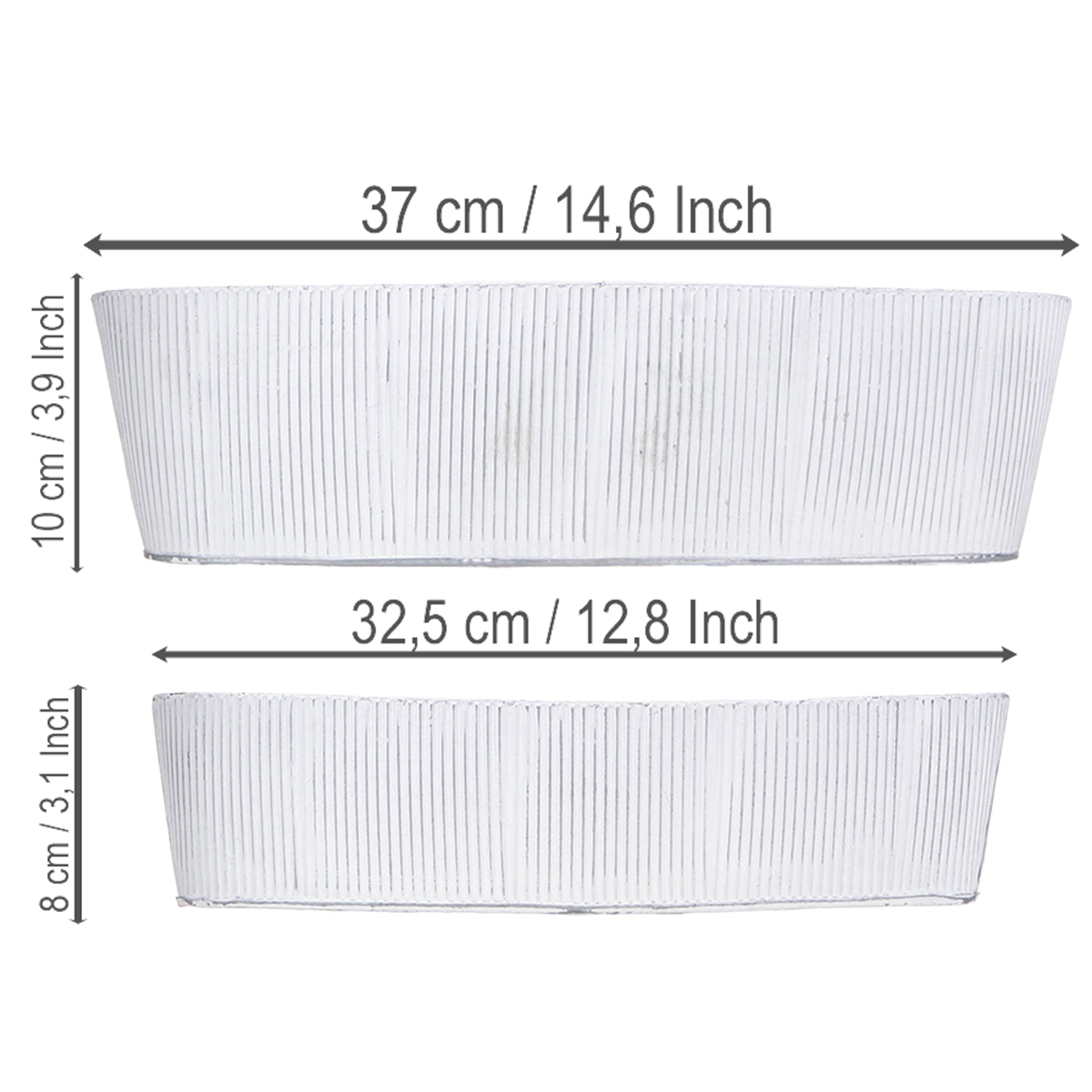 Le bol ovale en métal blanc et argent apporte une touche rétro et vintage à votre intérieur. Avec leur surface extérieure blanchie à la chaux et leur revêtement argenté à l'intérieur, ces bols en métal ajoutent des accents à la décoration de votre pièce. La forme simple et ovale séduit par son design contemporain, qui s'intègre parfaitement dans un style de décoration intérieure moderne ou scandinave - idéale comme décoration de table élégante et stylée. Associé aux accessoires de la catégorie décoration métallique de Floristik24, le résultat est une image globale harmonieuse. Le décor rainuré et la combinaison du blanc et de l'argent soulignent la brillance attrayante et font de ces bols un élément incontournable sur n'importe quel buffet ou table à manger.