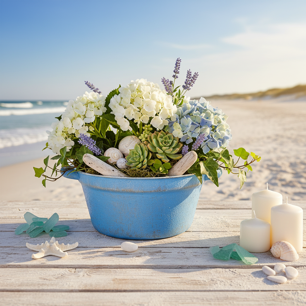 La décoration en métal est également magnifique avec des pierres décoratives ou du sable et des plantes grasses. En raison de la palette de couleurs, la jardinière s'intègre également parfaitement dans n'importe quelle décoration maritime. Décorez le bol avec du sable, des fleurs séchées, des coquillages et du bois flotté. C'est ainsi que le cache pot en métal devient une décoration de table harmonieuse.