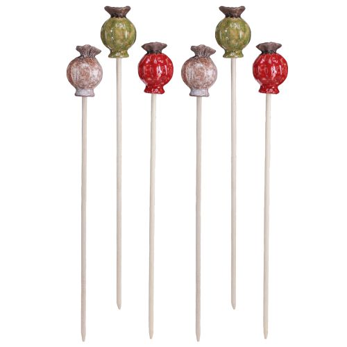 Bouchon à fleurs bois céramique coquelicot décoration 3 couleurs 35cm 6 pcs