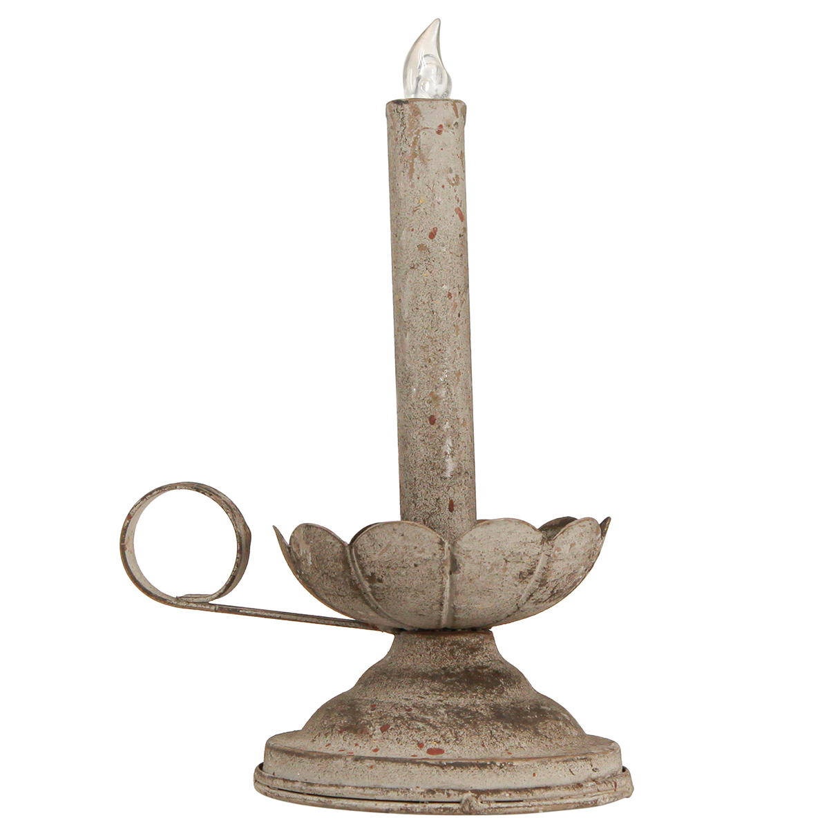 Bougeoir antique avec bougie LED en métal lumière chaude H22cm