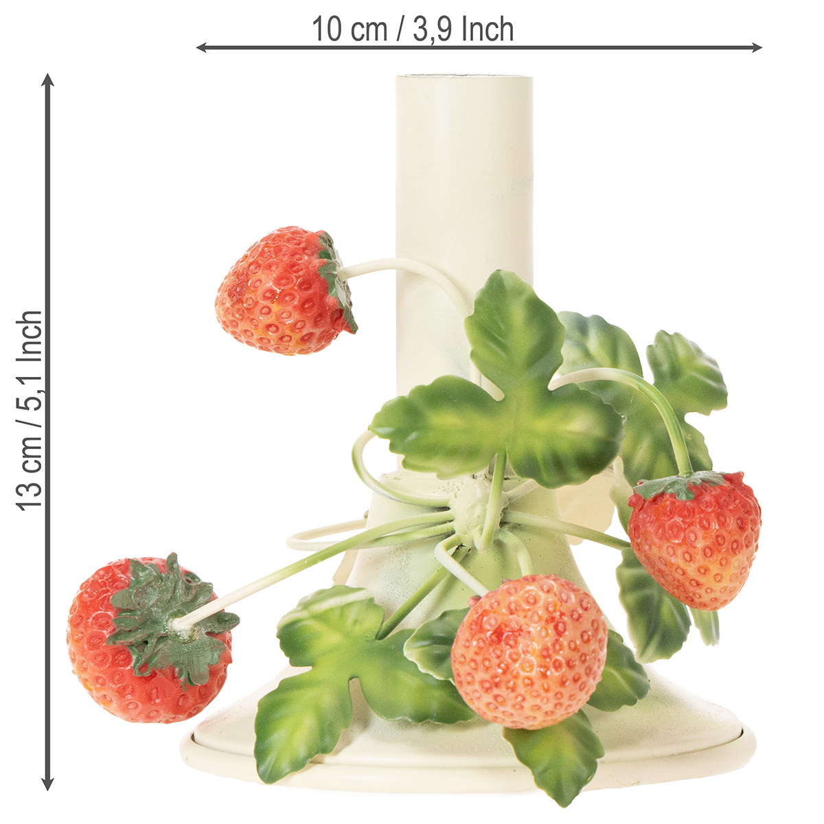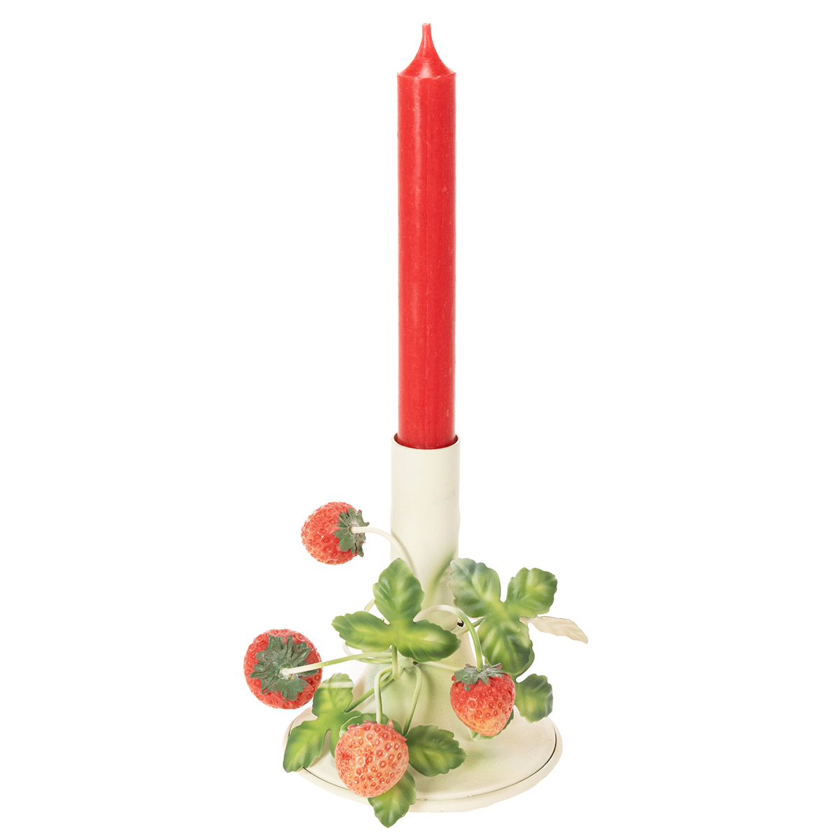 Bougeoir en métal décoré de fraises, couleur crème d'été, H13cm