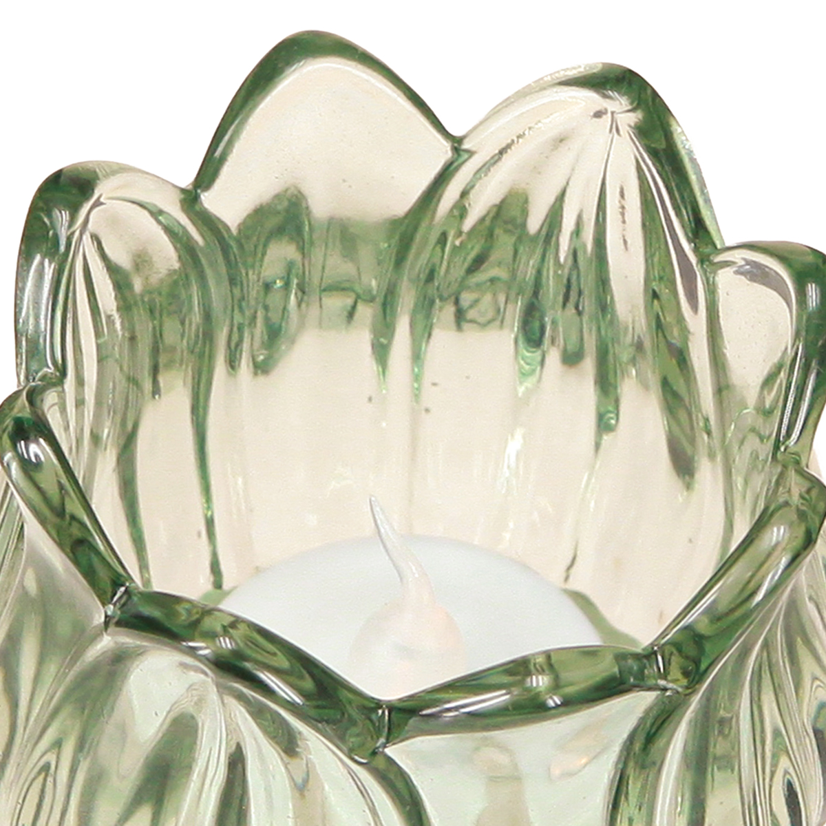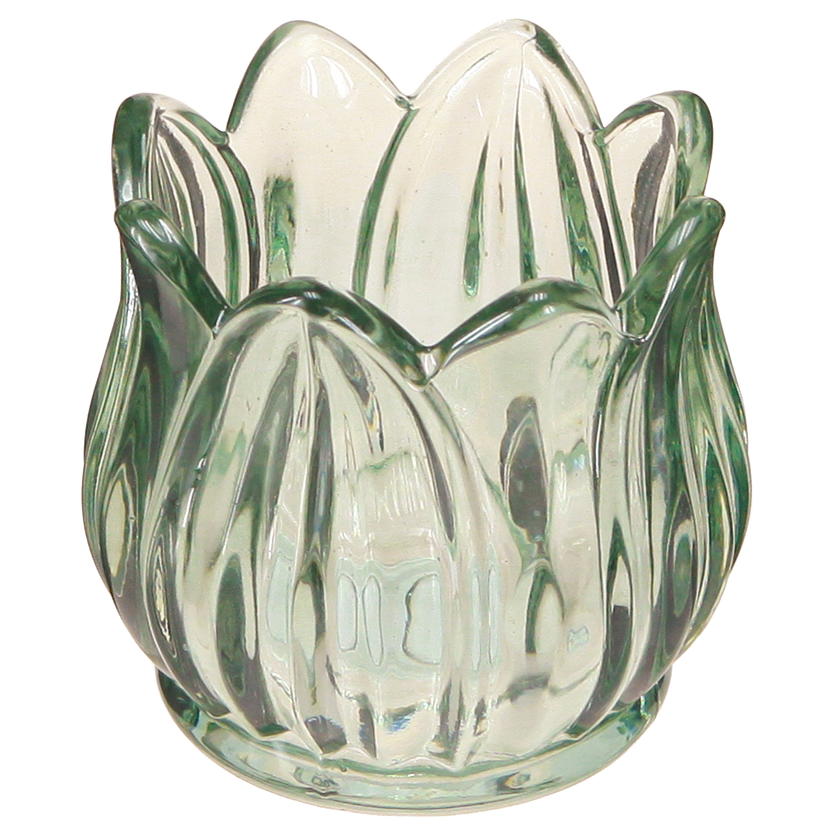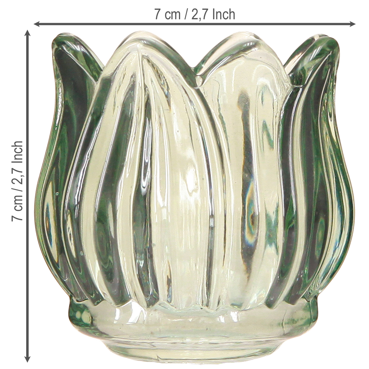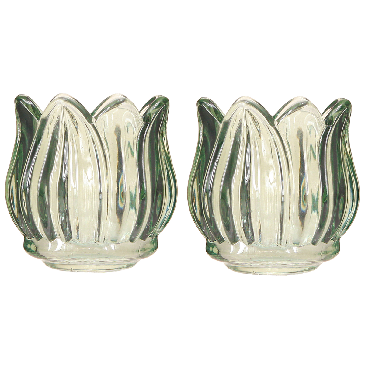 Bougeoir en verre tulipe vert Ø7cm H7cm 2pcs