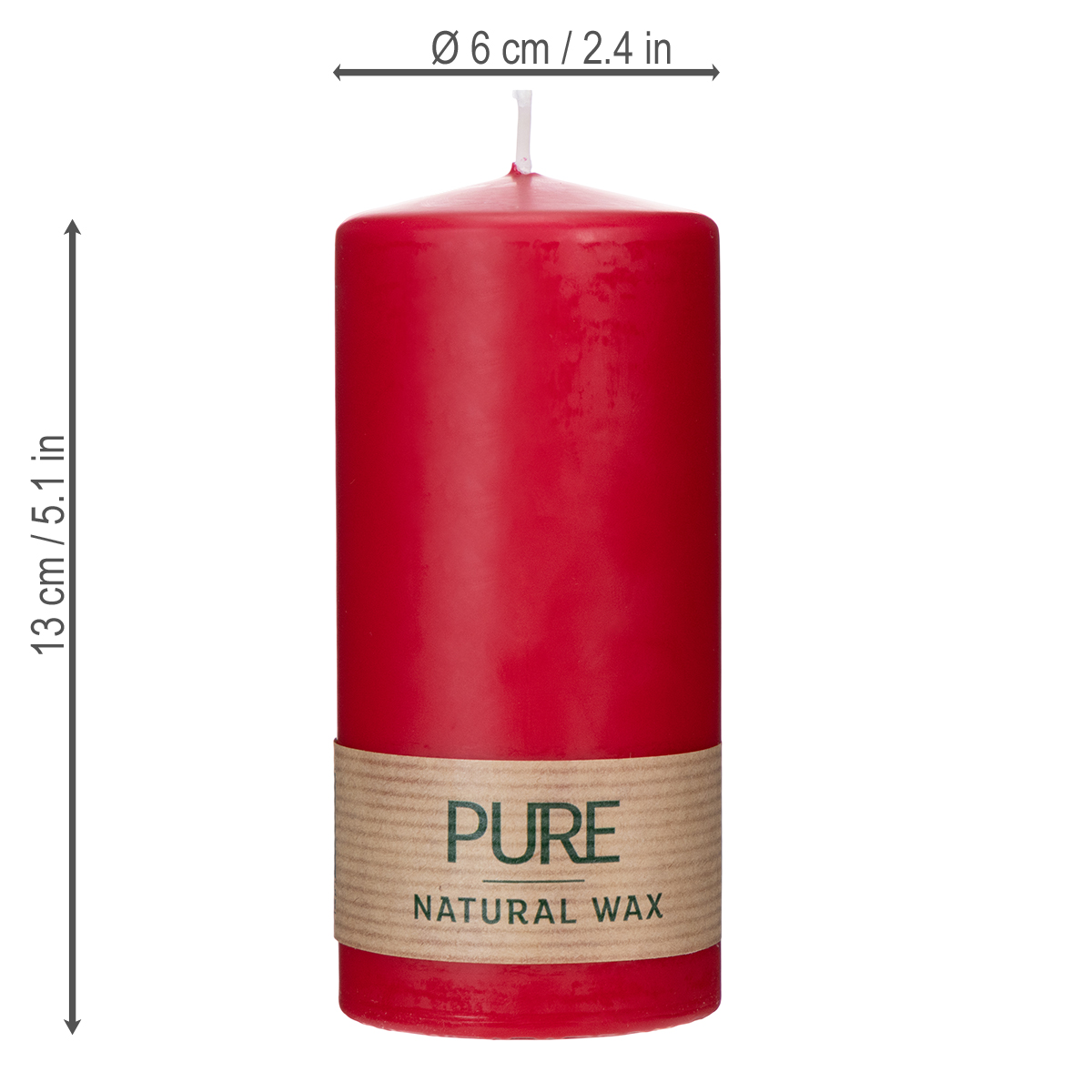 Bougie pilier rouge – Bougie PURE fabriquée à partir de cire naturelle pour une ambiance chaleureuse