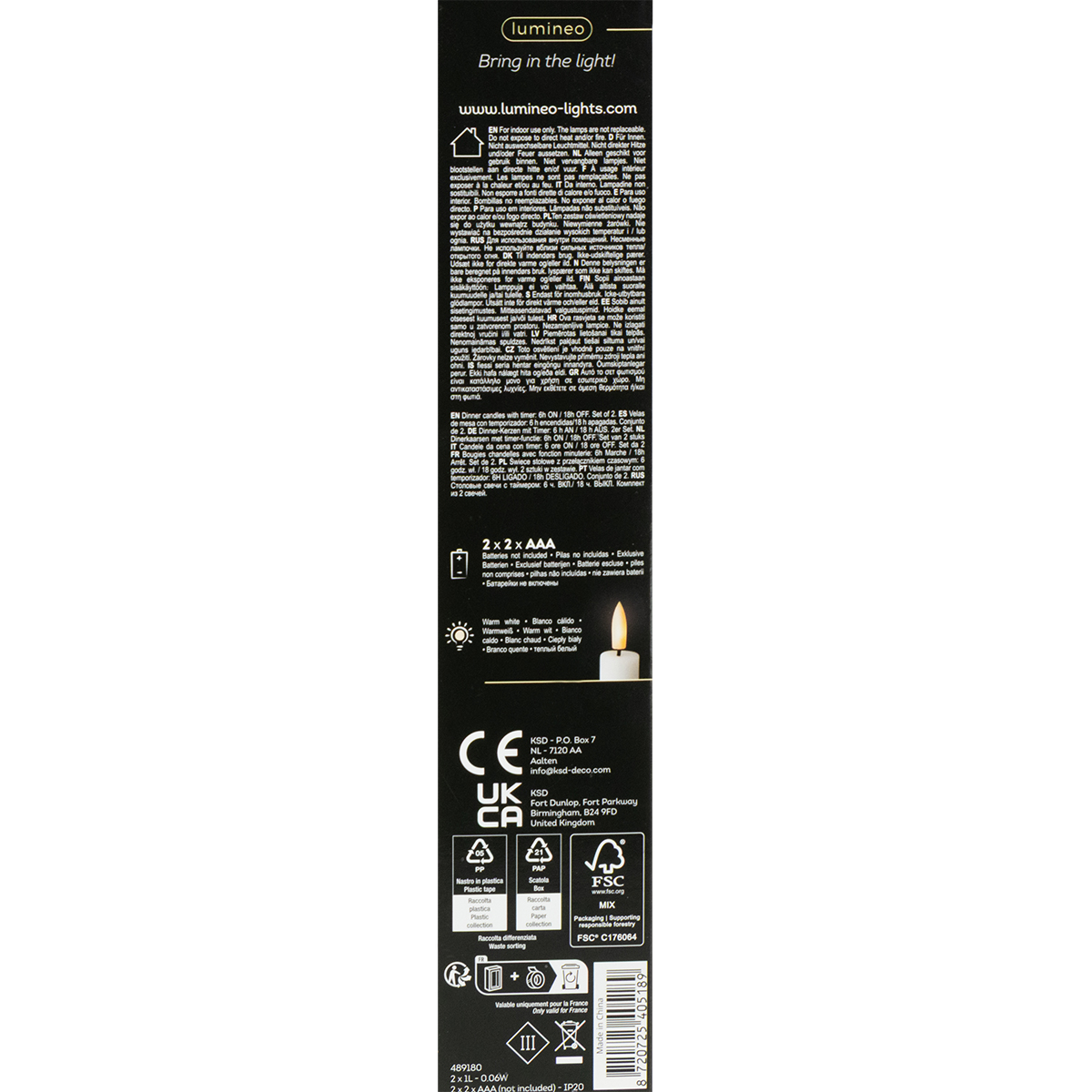 Bougies LED blanches coniques en cire blanc chaud 24,5 cm 2 pièces