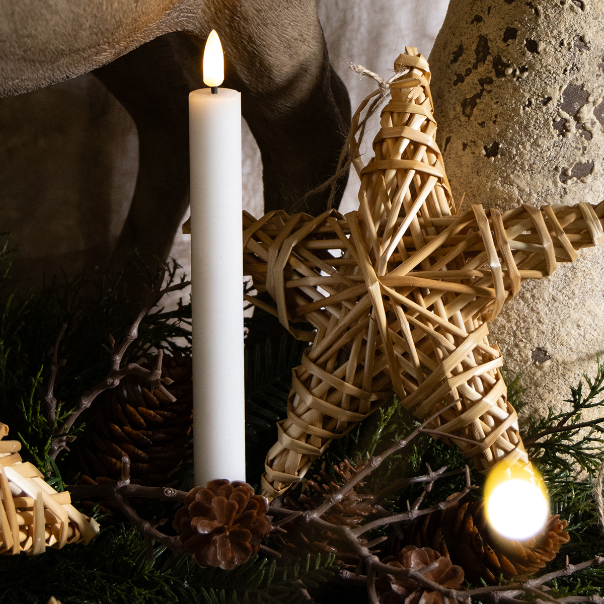Vous appréciez la douce lueur des bougies, mais vous préférez les vraies flammes ? Nos bougies LED blanches sont le choix idéal ! Avec leur design intemporel, leur cire véritable et leur agréable lumière blanche et chaude, ces bougies LED à piles créent une ambiance chaleureuse dans tous les environnements. Que ce soit pour un dîner romantique, une fête ou une soirée intime à la maison, ces bougies LED à effet flamme sont polyvalentes et sûres. Pas de traces de brûlure sur le chemin de table, pas de taches de cire ni de suie : détendez-vous et profitez de la lueur des bougies en toute sécurité. Associez ces bougies de 24,5 cm de haut à des candélabres décoratifs ou à une couronne de l'Avent et vous serez surpris par leur élégance.