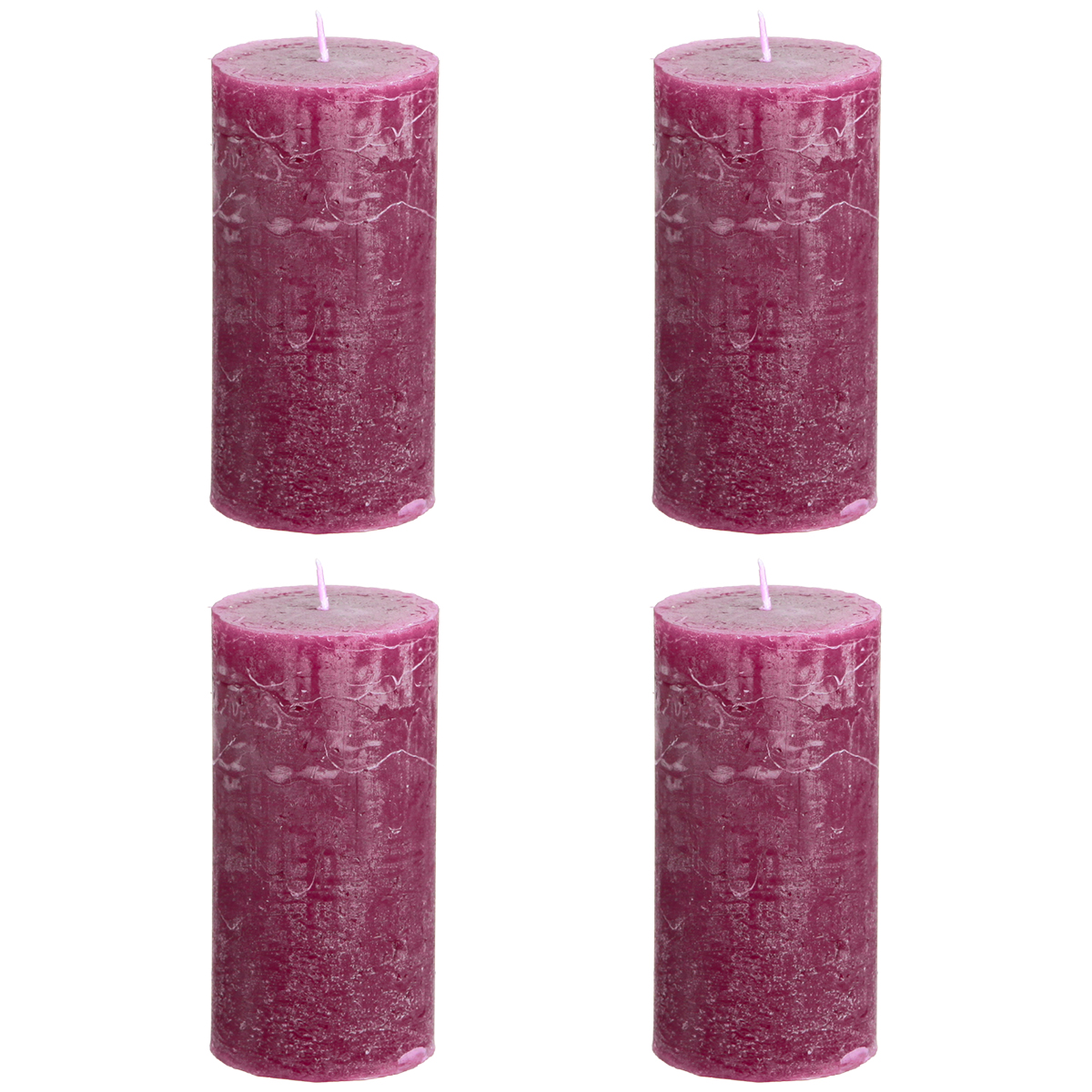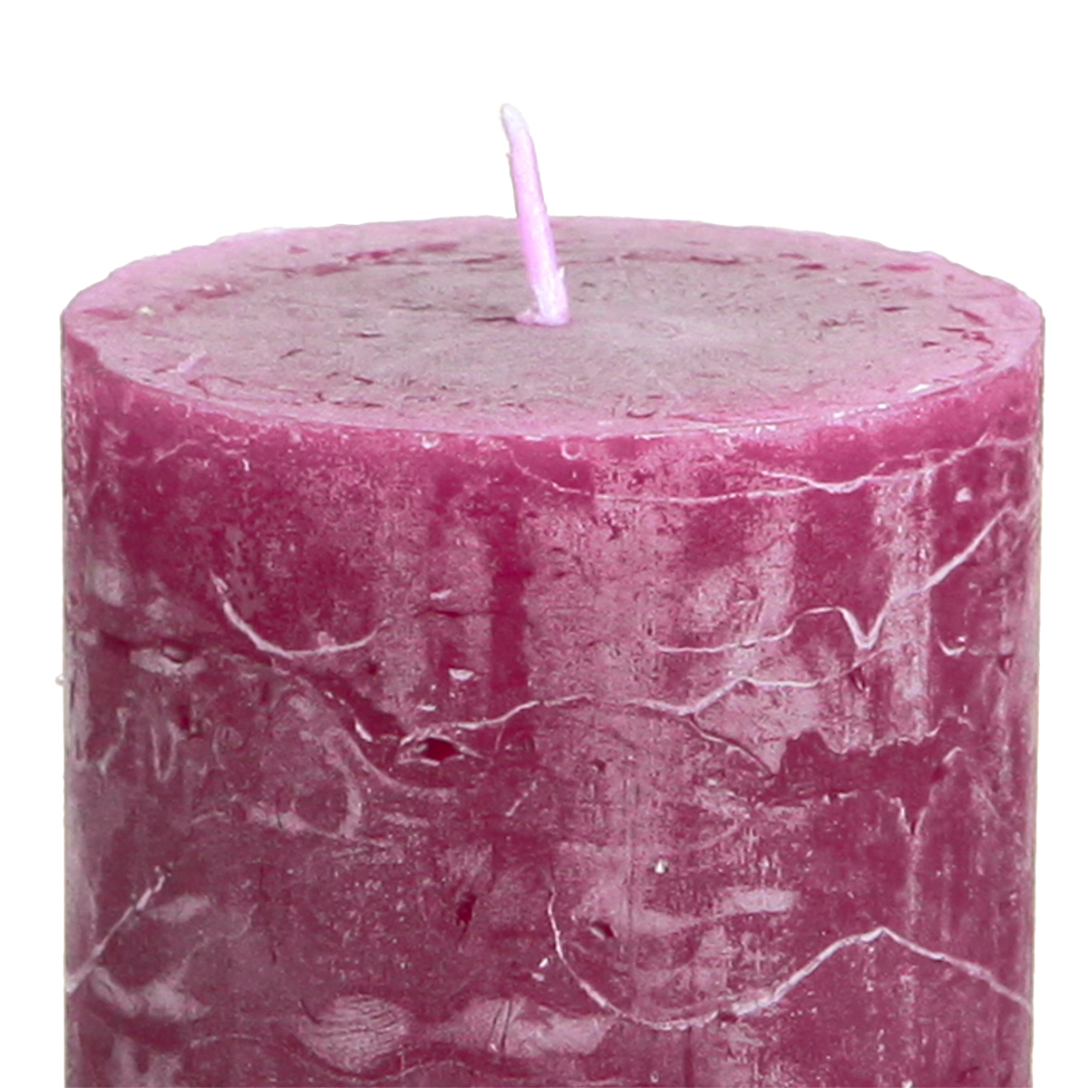 - Quatre bougies piliers de haute qualité, de couleur unie, dans un élégant violet (baie)