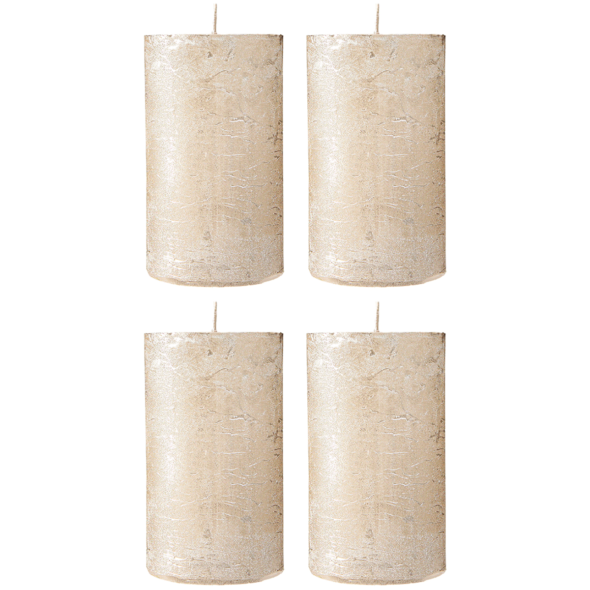 Design intemporel à l'élégance classique en platine métallique. Cette grande bougie est un accessoire particulièrement noble. La surface légèrement marbrée et la forme cylindrique de la bougie de pilier s’adaptent parfaitement à tout type de composition dans la zone de décoration. Grâce à la longue durée de combustion, vous pouvez passer d'innombrables heures dans les décorations de Noël de la couronne de l'Avent avec les bougies. Placé sur une assiette déco, avec des granules et des baies miroirs, il existe également un arrangement élégant pour une décoration de table festive.Les bougies colorées dans le platine métallique ont une hauteur approximative de 120 mm et un diamètre d'environ 70 mm et sont livrées par quatre dans un emballage en carton. Leur temps de combustion approximatif est de 53 heures. Veuillez respecter les consignes de sécurité relatives à la manipulation de flammes nues lors de la combustion.