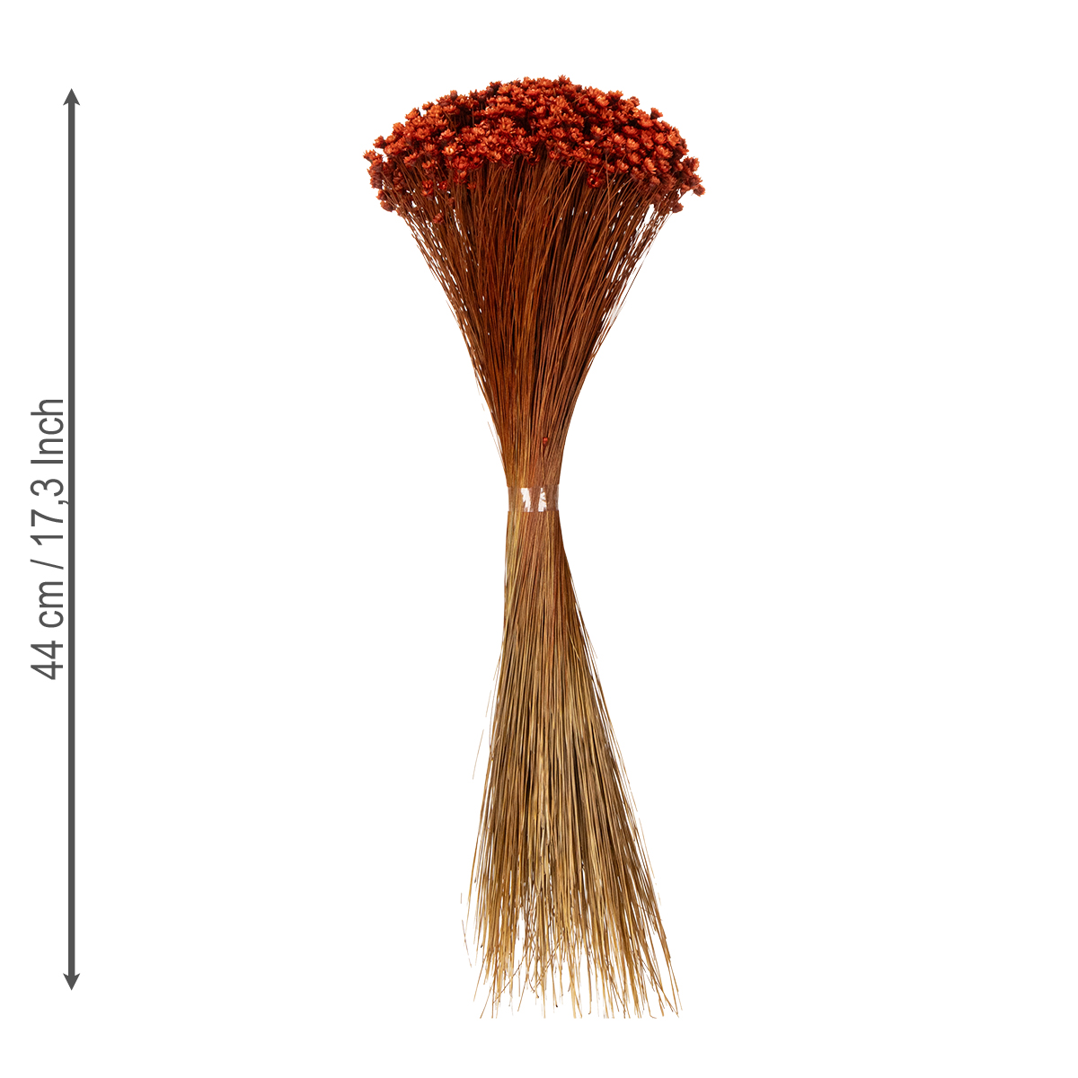 Avez-vous déjà remarqué comment un bouquet de fleurs bien disposé peut instantanément égayer une pièce ? Notre composition de fleurs séchées rouges aux accents naturels apporte une ambiance chaleureuse et accueillante à votre intérieur. D'une hauteur de 44 cm, elle attire tous les regards sur une table et se prête aussi parfaitement aux grands vases ou à la création de compositions florales individuelles. Il suffit de la poser et d'en profiter : grâce à la longue durée de vie des fleurs séchées, elle ne nécessite ni arrosage ni entretien. Idéale pour tous ceux qui souhaitent ajouter une touche de nature. Cette magnifique composition, composée de glixia et de graminées délicates, s'harmonise avec différents styles de décoration, du bohème au champêtre en passant par le rustique moderne. Créez votre propre oasis de bien-être, que ce soit dans le salon, l'entrée ou comme centre de table raffiné pour les occasions spéciales. N'est-ce pas l'accessoire parfait pour votre maison ?