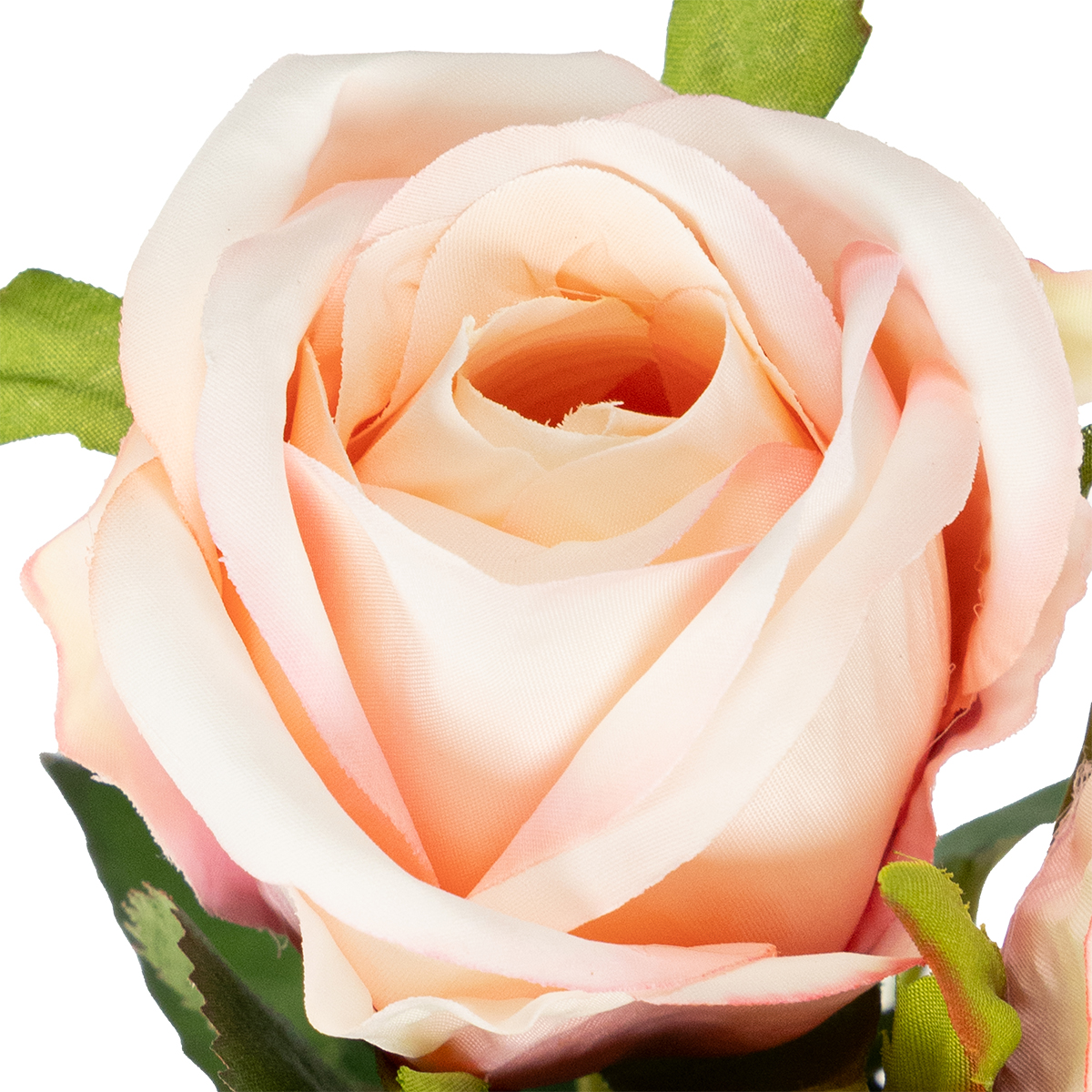 Vous aimez le charme des roses mais souhaitez éviter les contraintes d'entretien ? Aucun souci ! Avec notre bouquet de roses artificielles, invitez la beauté intemporelle de la reine des fleurs directement chez vous. Idéal pour tous ceux qui apprécient une décoration élégante sans les inconvénients des fleurs fraîches. Que ce soit comme pièce maîtresse dans le salon, comme charmante décoration de table pour les occasions spéciales ou comme cadeau raffiné, ce bouquet de roses crée une ambiance unique dans n'importe quelle pièce. Les délicates fleurs roses en soie, associées à un feuillage vert tendre, sont si réalistes qu'on pourrait presque oublier qu'elles sont artificielles. Vos invités seront émerveillés !