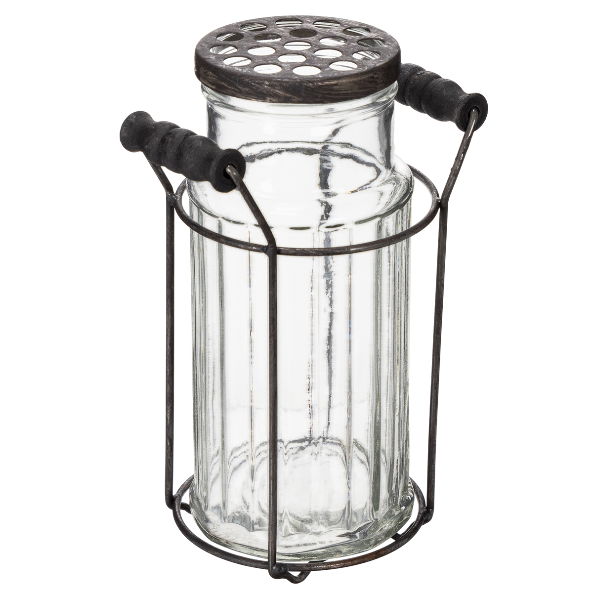 Envie d'un objet déco intemporel ? Cette bouteille en verre avec son panier en métal est non seulement pratique, mais aussi un véritable bijou. Sa transparence et son support en métal rustique lui confèrent un charme vintage qui s'intègre harmonieusement à tous les intérieurs. Sur la table du salon, dans la cuisine ou comme vase original, elle ne manquera pas d'attirer les regards ! Et le meilleur ? Les trous du couvercle vous invitent à y disposer élégamment vos fleurs. En un clin d'œil, vous aurez une petite œuvre d'art.