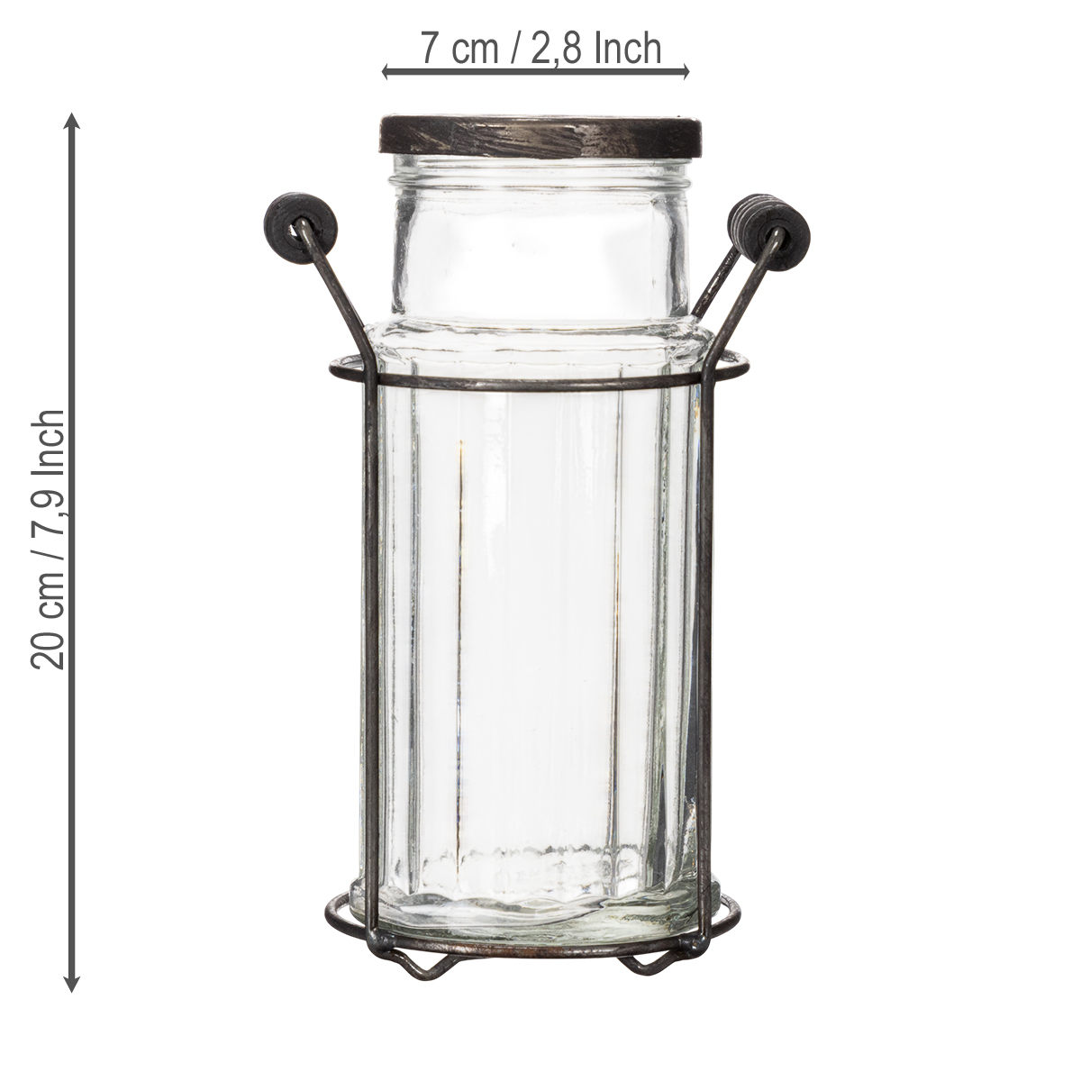 L'alliance du verre et du métal apporte une touche industrielle chic à votre intérieur, tandis que sa fabrication soignée en fait un objet classique et élégant. Confectionnée en verre de haute qualité et dotée d'une structure métallique robuste, cette bouteille impressionne par son esthétique et sa durabilité. Son couvercle percé de petites ouvertures la rend particulièrement polyvalente : utilisez-la comme vase pour une fleur unique, comme pot à ustensiles décoratif ou même comme bougeoir original. Que ce soit dans le salon, la cuisine ou l'entrée, cette bouteille en verre trouvera sa place partout.
