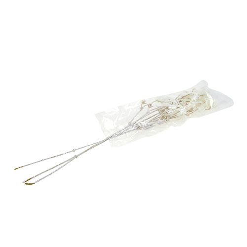 La clématite commune s'appelle également Clematis vitalba ou barbe de vieillard en raison de ses peuplements de fruits blancs et ressemble particulièrement à l'hiver, dans la glace et la neige, belle et atmosphérique. Cette branche de clématites floquée en blanc complète à merveille une décoration de Noël onirique et crée une atmosphère hivernale dans les salons, les entreprises et les chambres d’hôtes. Les pétales étroits ressemblant à du fil et les tiges des branches de clématite sont couvertes d'un floc doux, ce qui donne l'impression qu'elles sont recouvertes de givre et de neige.Avec les branches de clématites minutieusement travaillées et d'une apparence trompeuse, vous obtenez la magie d'une maison de forêt d'hiver enneigée, par exemple, en les rangeant dans de jolis vases en verre. Vous pouvez combiner la clématite avec des branches de sapin et de houx, de gros cônes et des brindilles de rowan. De jolis pendentifs déco et de simples ornements pour arbres de Noël en métal blanc ou en bois complètent le tableau général. Même dans des arrangements de fête et des guirlandes de porte, les branches sont magnifiques. Avec leur apparence hivernale, ils peuvent également être utilisés comme décoration de table inhabituelle et comme bijou pour les vitrines de magasins.
