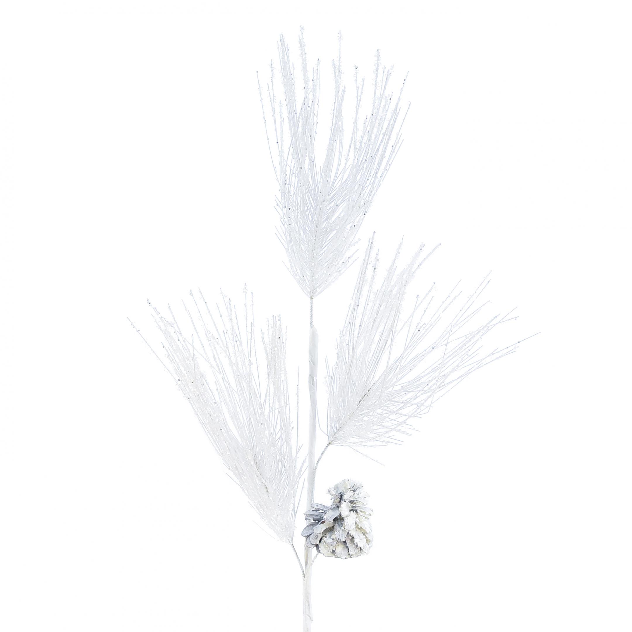 Branche de pin artificielle avec cônes blanc pailleté L55cm