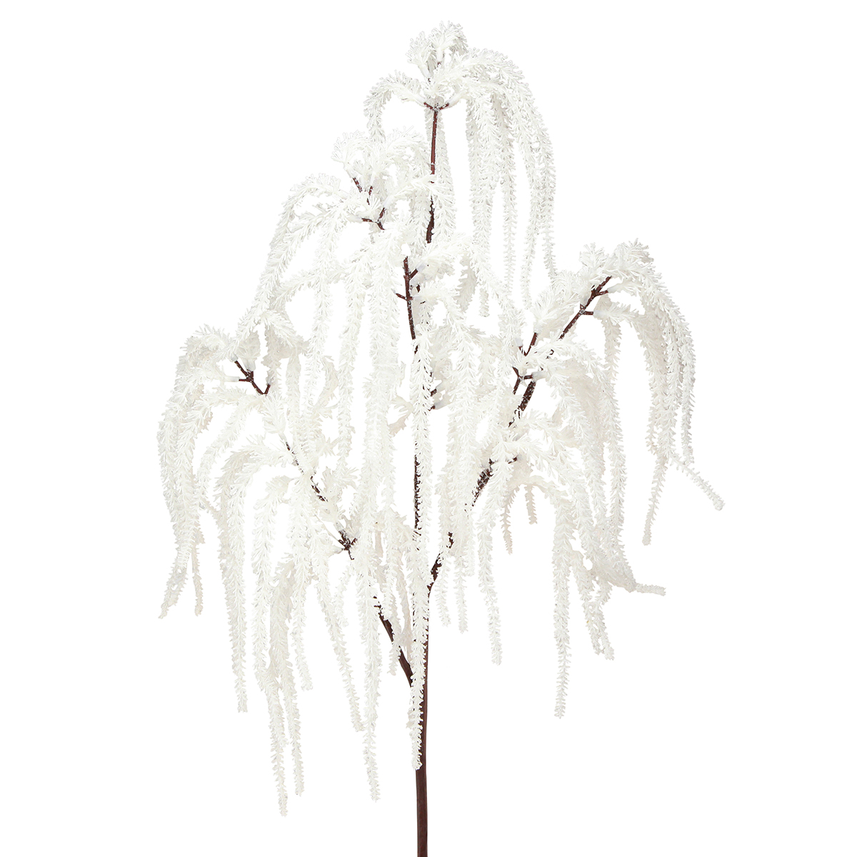 Branche décorative de saule pleureur enneigé blanc : décoration hivernale à paillettes