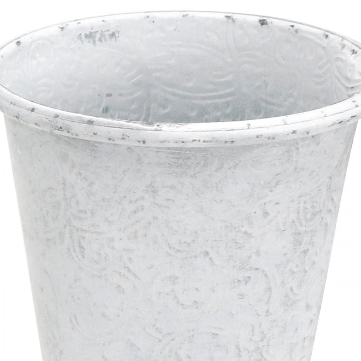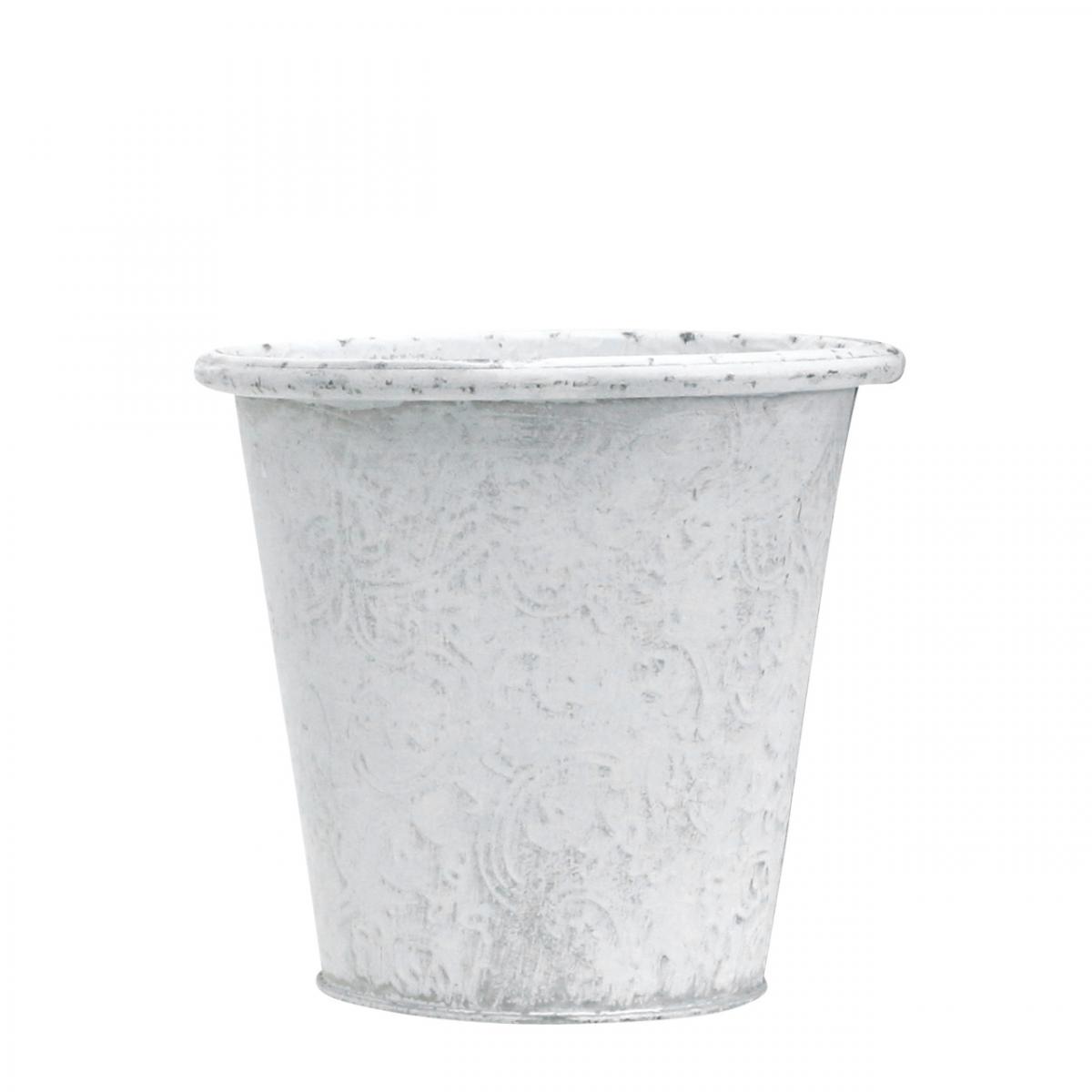 Cache-pot avec ornements, jardinière, récipient en métal blanc Ø15,5cm H14,5cm