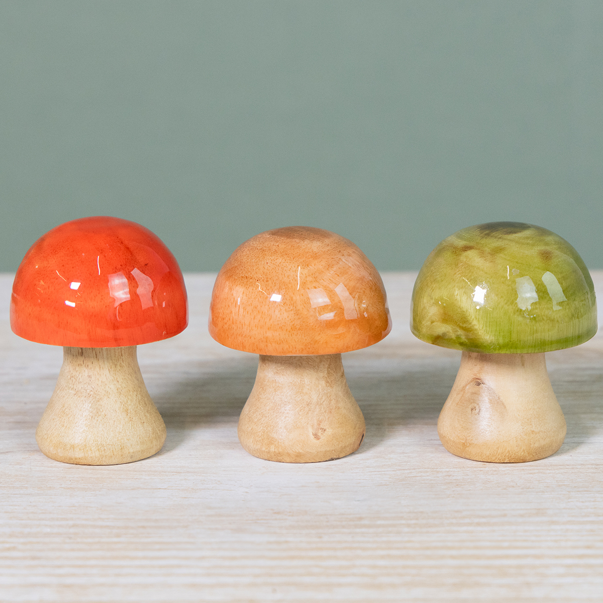 Champignons en bois décoratifs d'automne, verts, rouges et oranges, hauteur 6,5 cm, lot de 9.