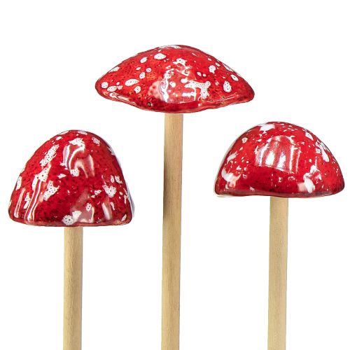 Champignons vénéneux sur bâton, rouges, 5,5 cm - champignons d'automne décoratifs pour le jardin et la maison, 6 pièces
