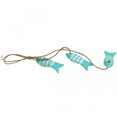 Cintre déco maritime poisson en bois à suspendre petit turquoise L31cm