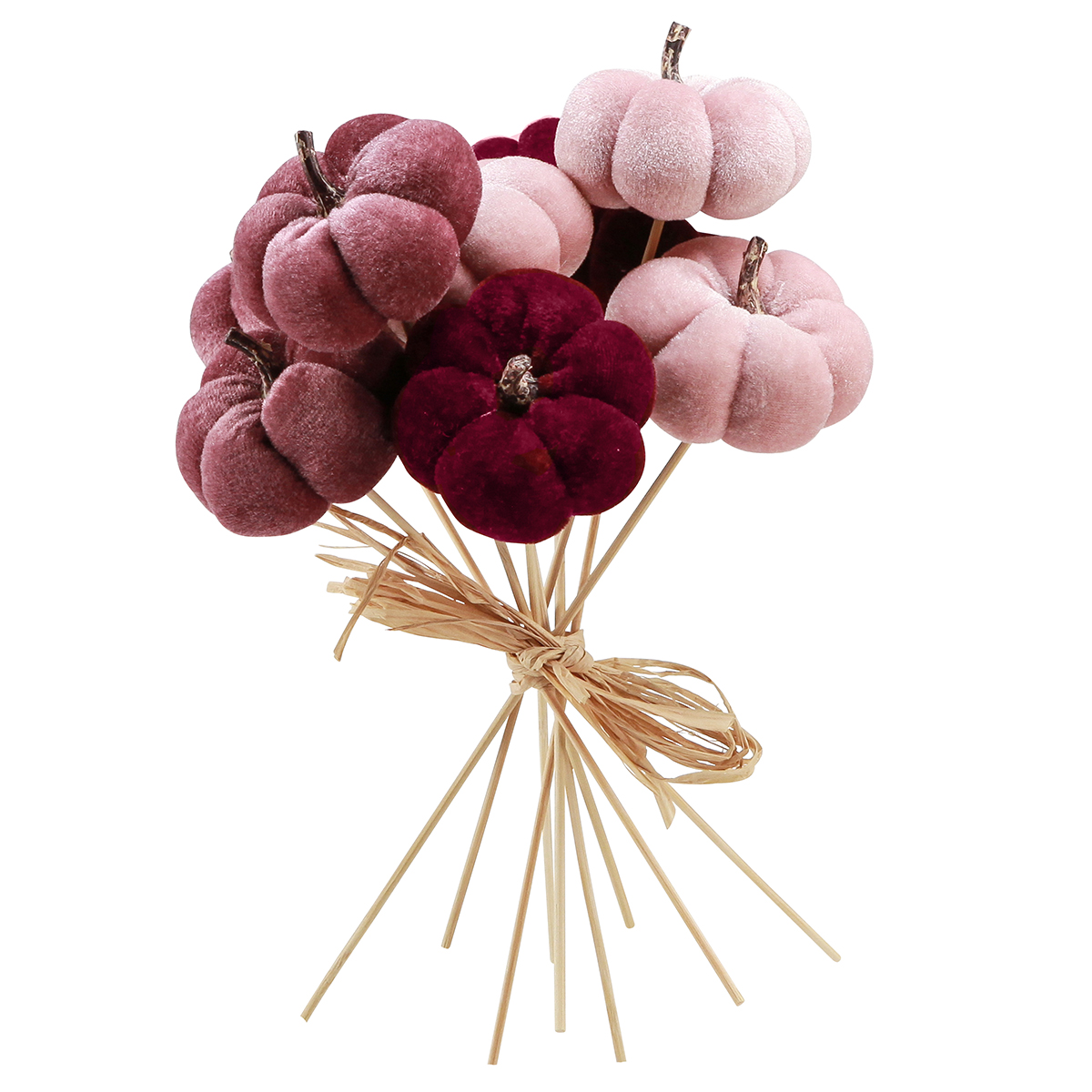 Nom du produit : Citrouille décorative en tissu citrouille sur bâton rose bordeaux Ø7cm 9 pcs