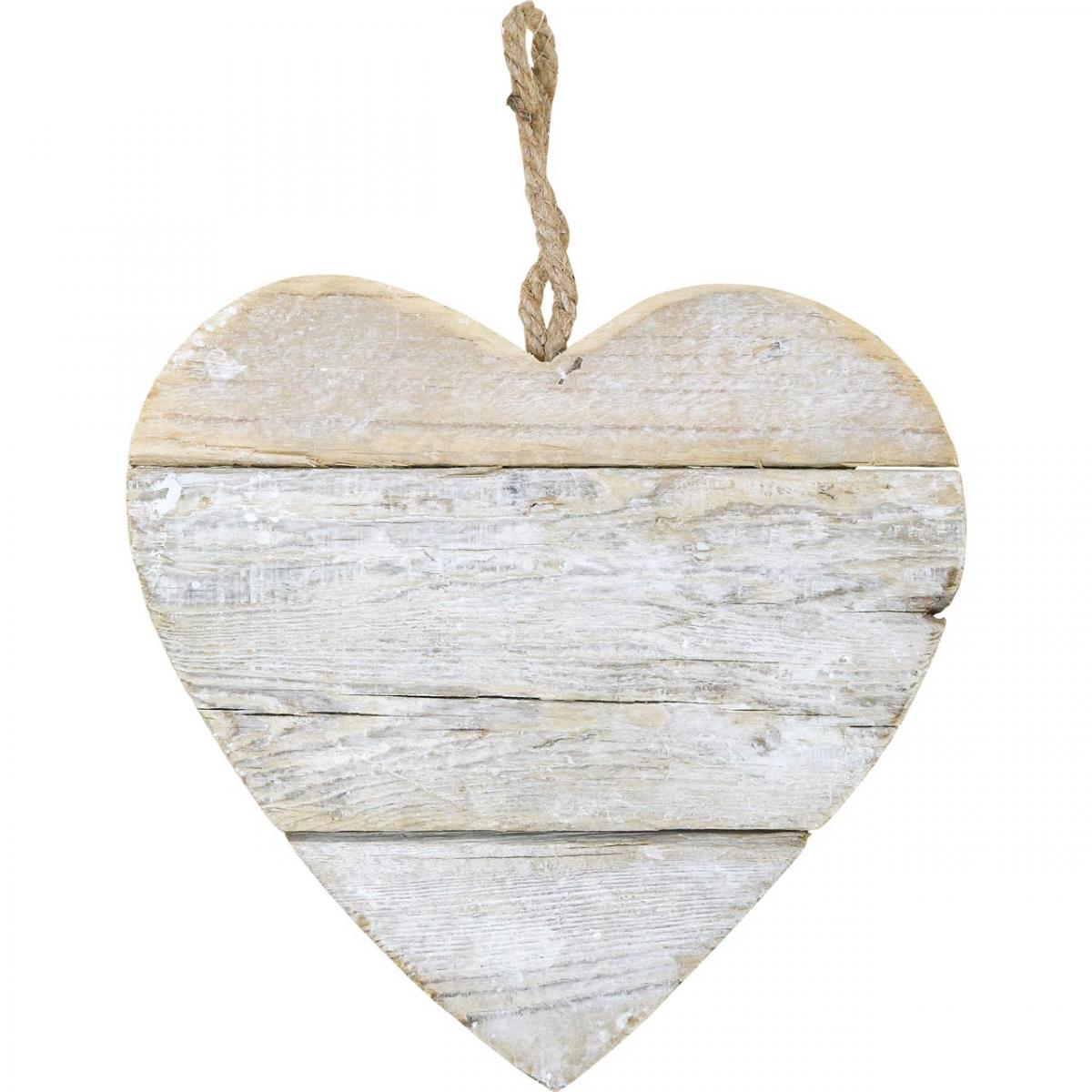 Coeur en bois, coeur décoratif à suspendre, décoration coeur blanc 24cm