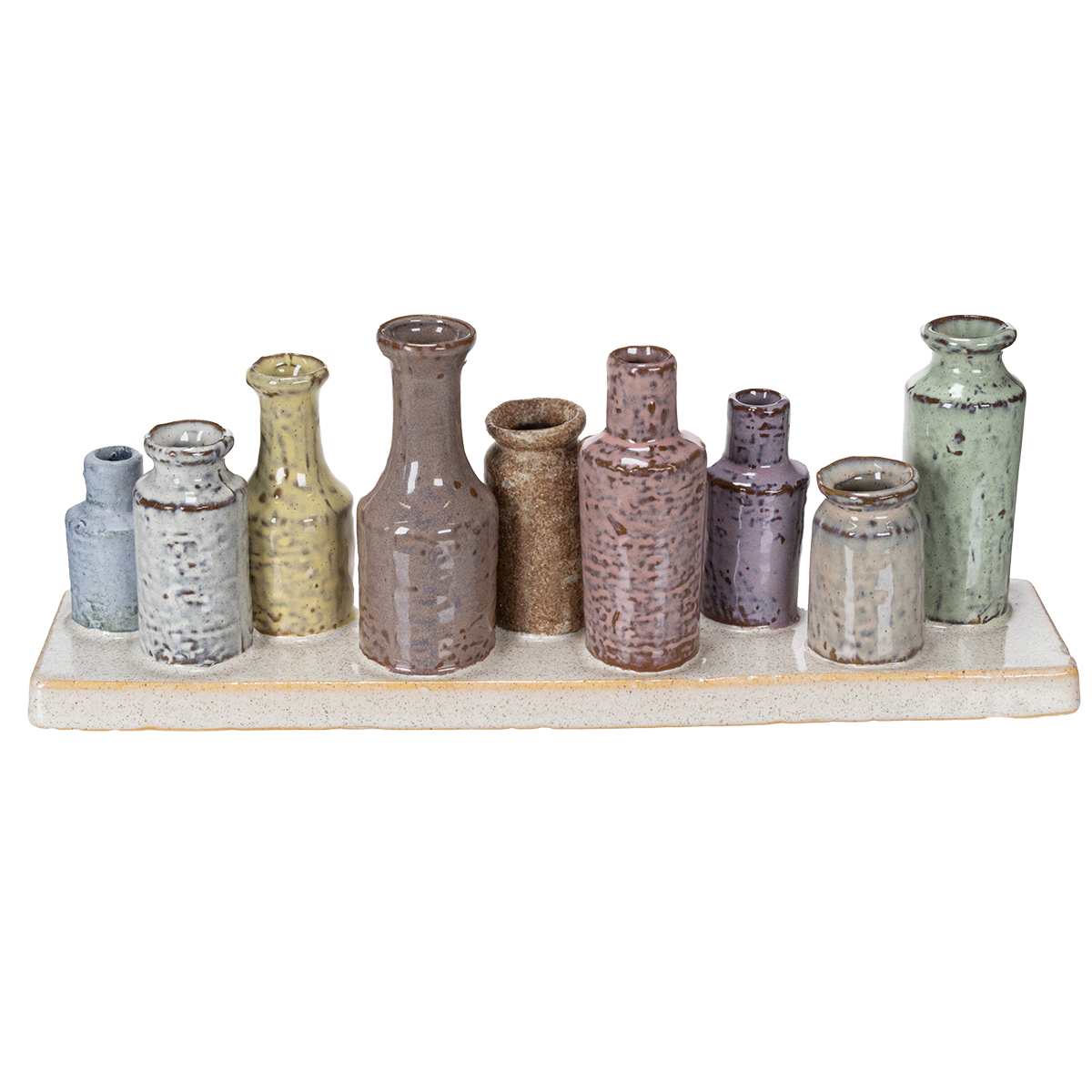 - 9 petits vases en céramique faits à la main, aux couleurs assorties