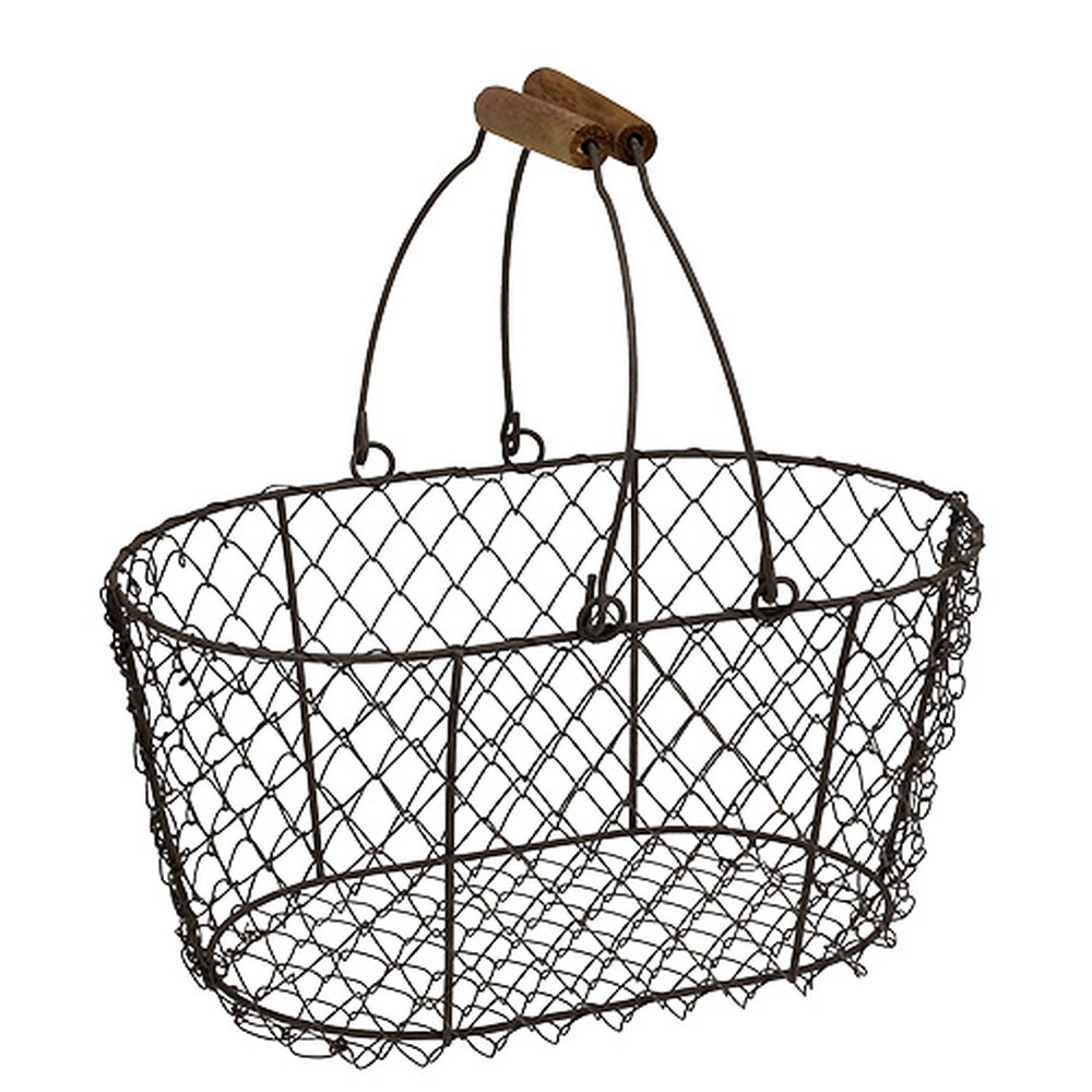 Corbeille en fil ovale avec anse 27x16,5cm H13,5cm marron