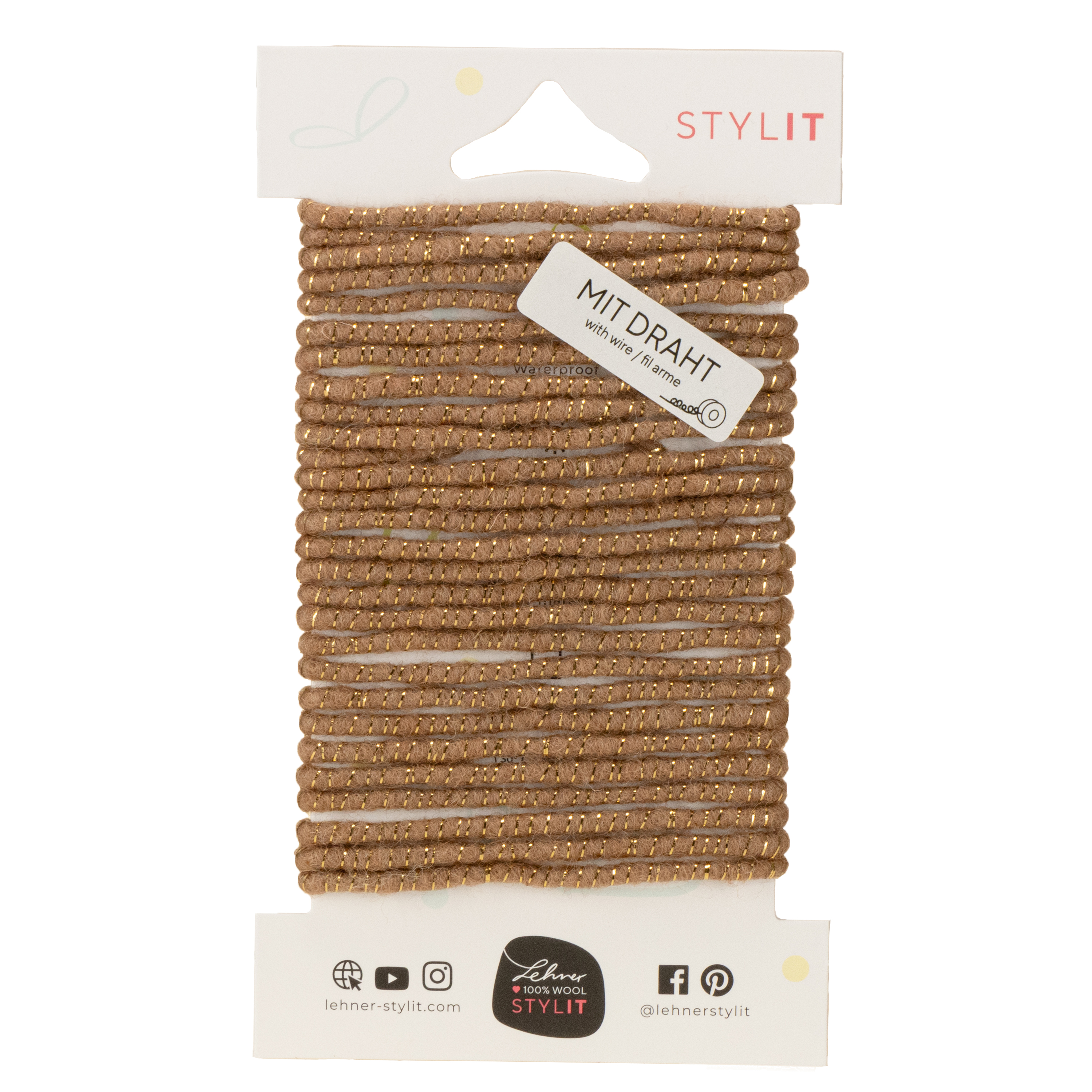 Ce cordon en laine marron et or est un véritable atout pour la décoration, les loisirs créatifs et tous vos projets. Fabriqué en pure laine et orné de fines paillettes dorées scintillantes, il offre un rendu particulièrement raffiné. Idéal pour apporter une touche chaleureuse et élégante à toutes vos créations. Le fil métallique intégré maintient le cordon en forme et permet de le plier facilement selon vos envies, des plus délicates aux plus audacieuses boucles et nœuds.