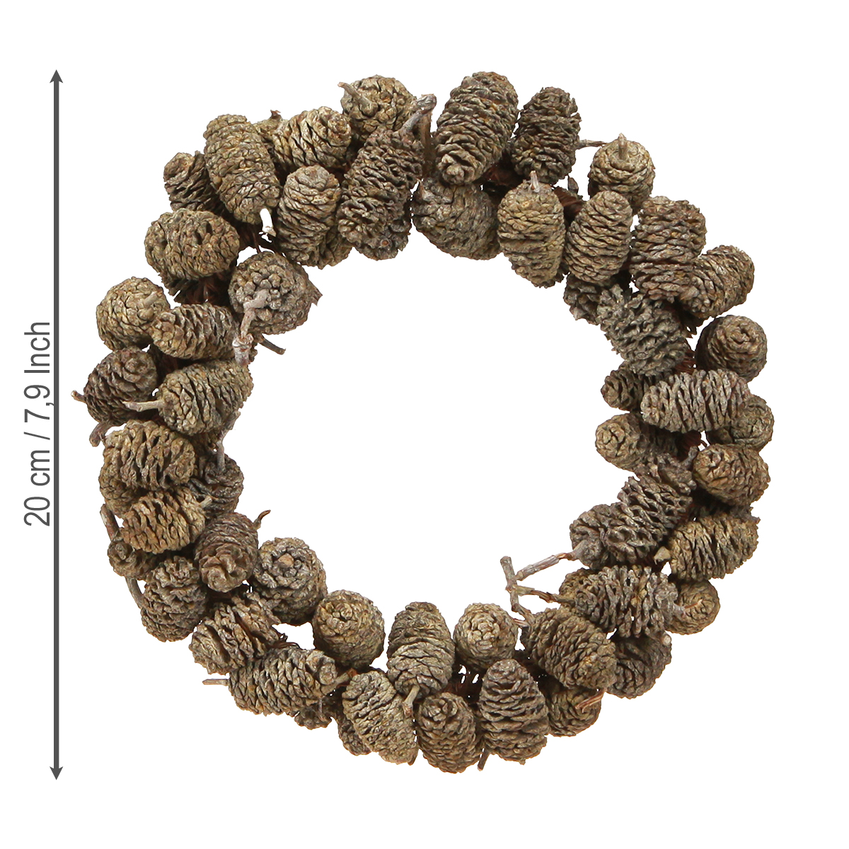 Nom du produit : Couronne de cônes d'aulne à suspendre, blanchie à la chaux Ø18cm