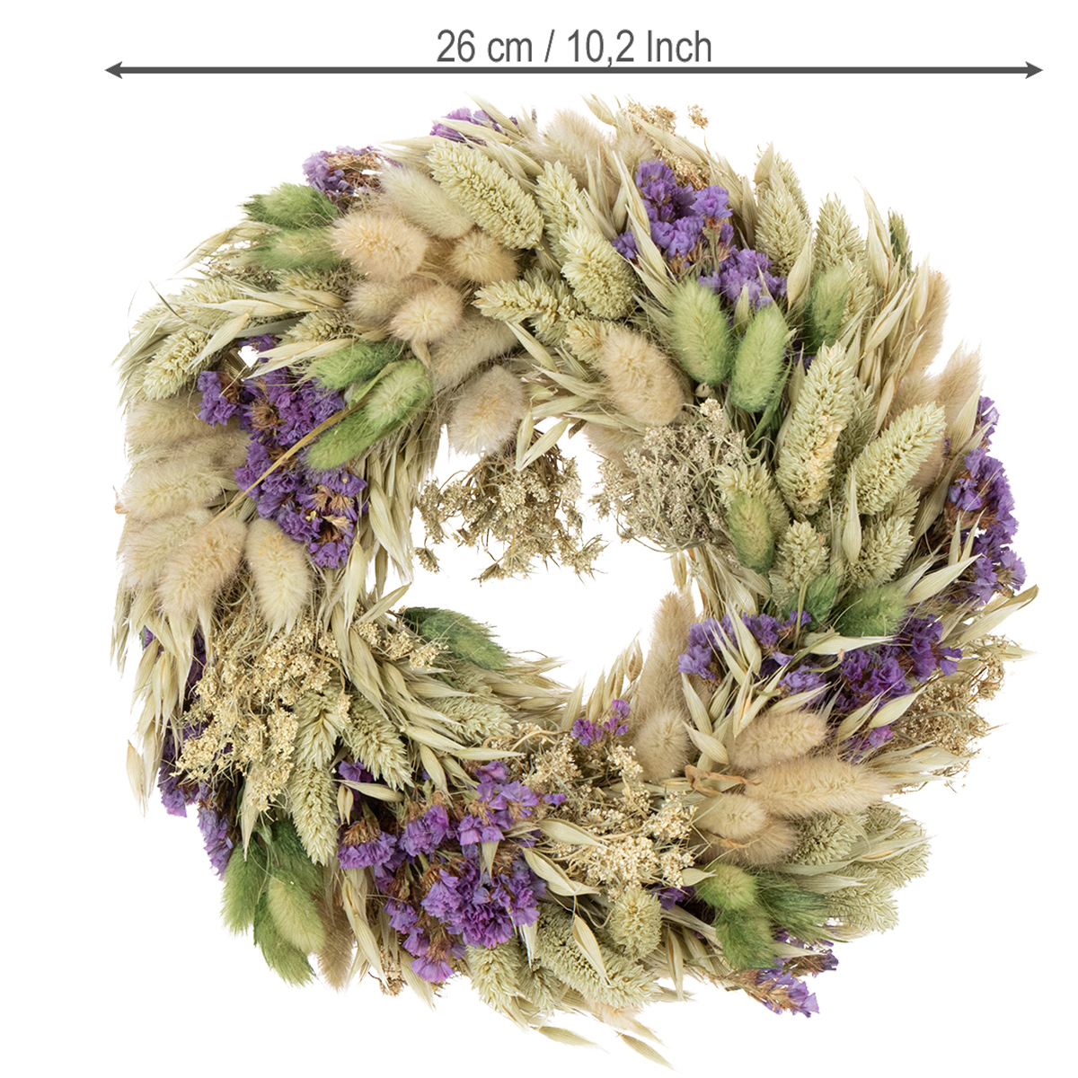Couronne de fleurs séchées pour le printemps et l'été, pour la table et la porte d'entrée, pour les occasions spéciales avec des touches de couleur, 26 cm