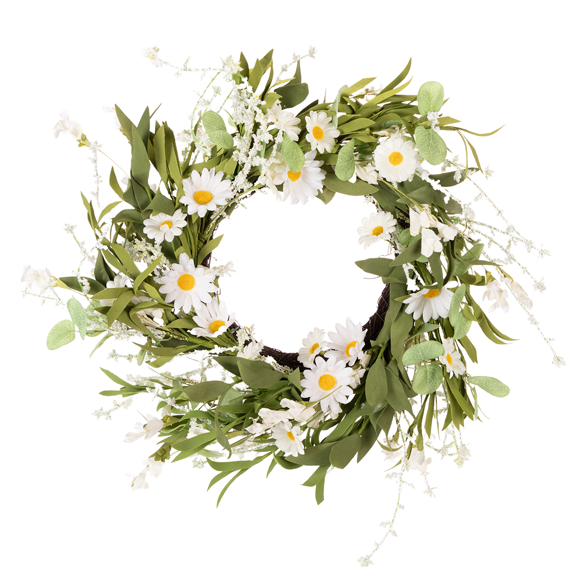 Couronne de marguerites artificielles, aspect naturel et résistante, pour la décoration de portes et de murs, 55 cm