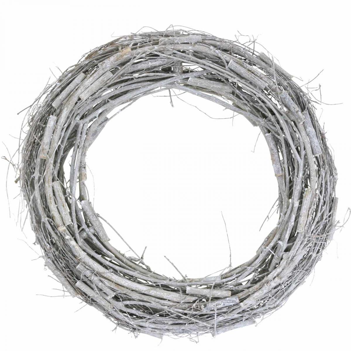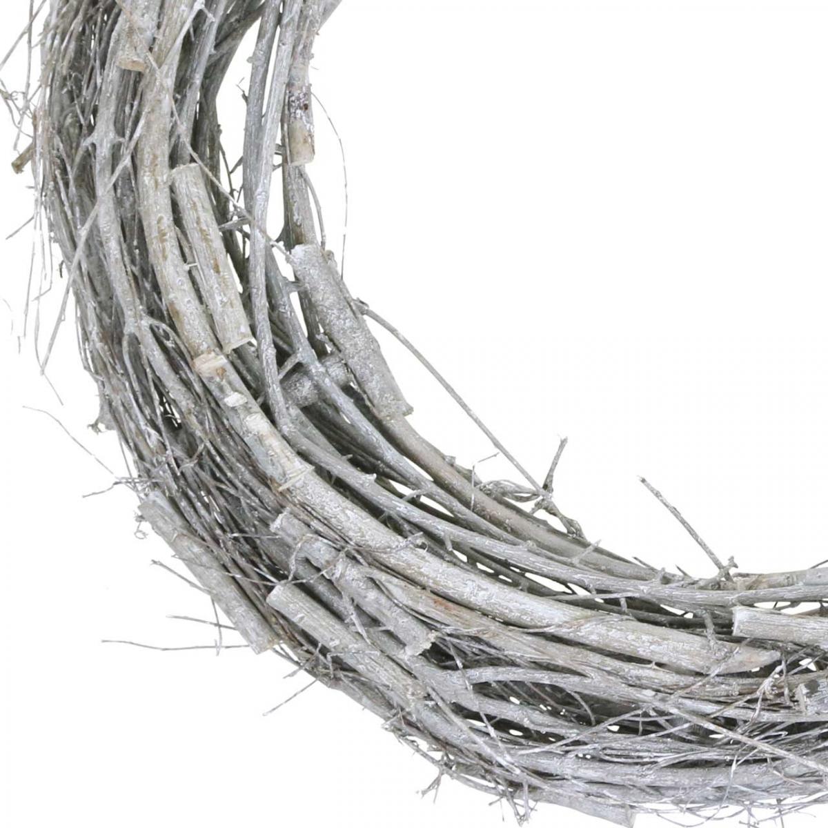 Couronne déco Ø50cm branches d'orme blanchies avec des vignes couronne de porte grande