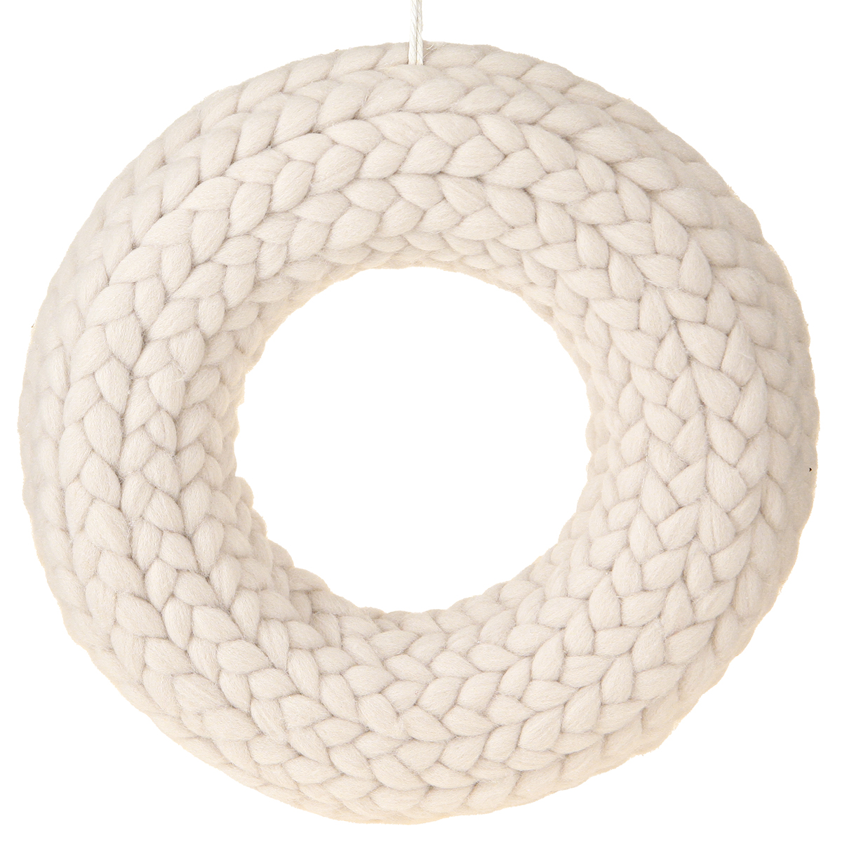 Nom du produit : Couronne décorative en laine feutrée à suspendre en beige Ø30cm H4cm