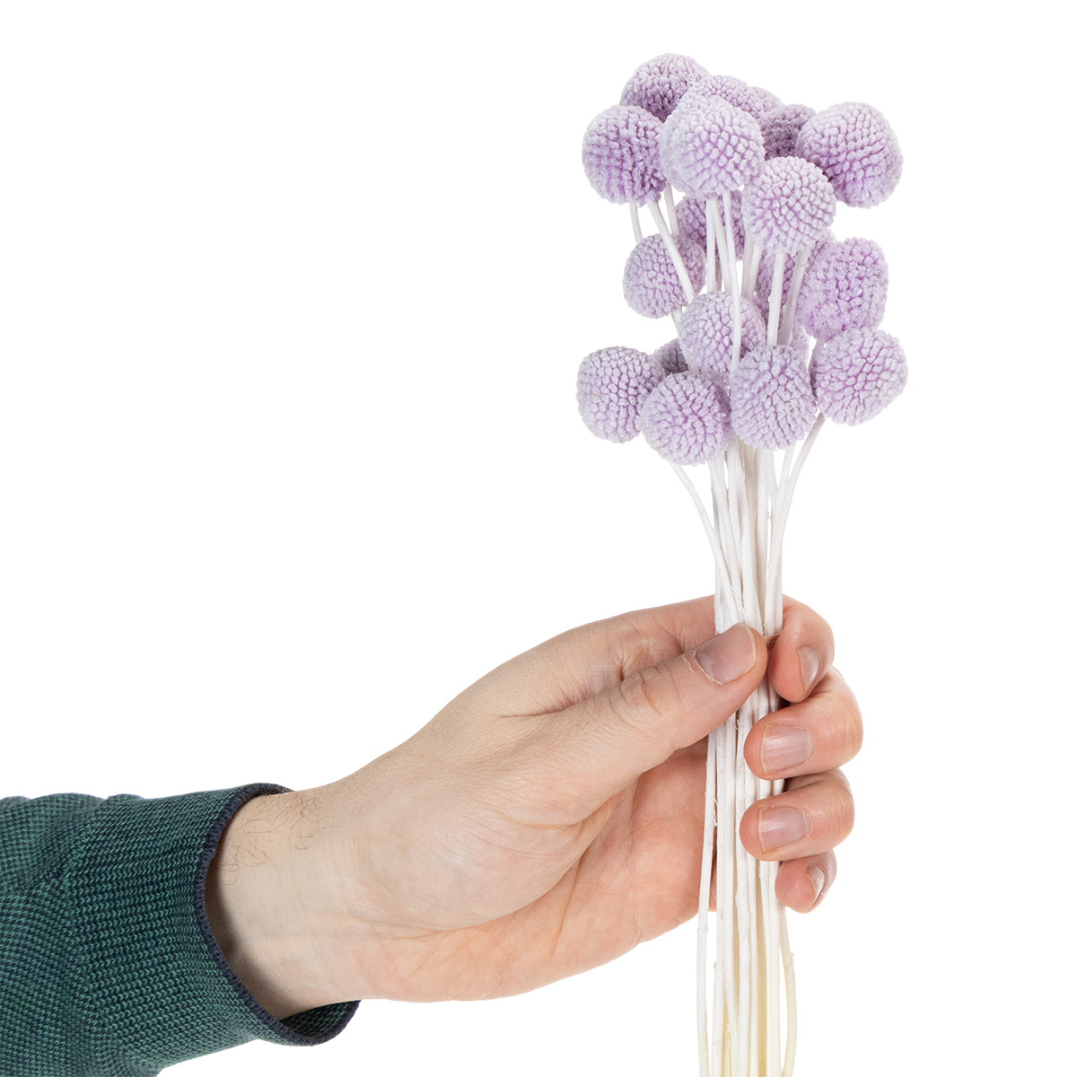 Apportez une touche d'élégance et de personnalité à votre intérieur ! Ces craspedias séchées, d'un violet clair, sont un véritable régal pour les yeux et le choix idéal pour une décoration moderne. Mesurant 55 cm de long et composées de 20 tiges par bouquet, ces charmantes fleurs en forme de bâtonnets de tambour attireront tous les regards. Grâce à leur structure robuste et leurs tiges naturelles, ces fleurs décoratives sont parfaites pour l'intérieur : elles sublimeront vos vases, agrémenteront votre décoration de mariage ou feront un cadeau unique. Leurs têtes veloutées, d'un violet profond, de 2 à 3 cm de diamètre, invitent à la sérénité et à l'harmonie. Découvrez la simplicité d'une magnifique décoration florale !