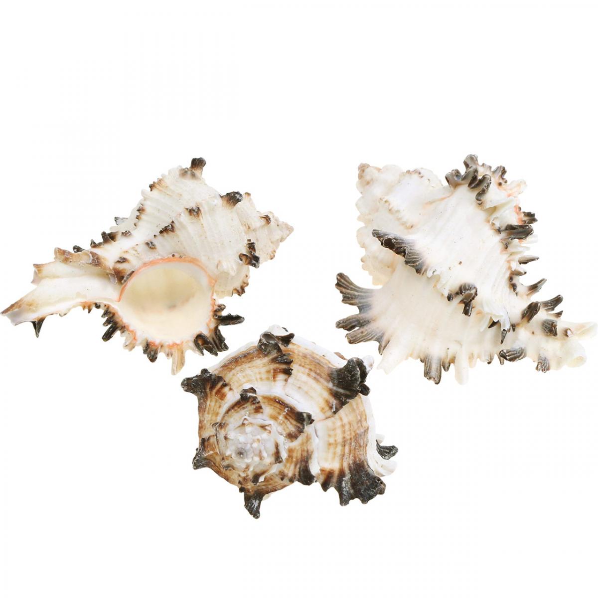 Les belles coquilles d'escargots décoratives font sensation dans la décoration naturelle. Les escargots de mer proviennent des profondeurs de la mer Indo-Pacifique et appartiennent au genre Murex, les escargots épineux. Les coquillages blancs comme neige et tabby de la décoration en coquillages sont extrêmement pittoresques. Chaque escargot naturel a été soigneusement sélectionné, vidé et nettoyé pour la décoration maritime exclusive.