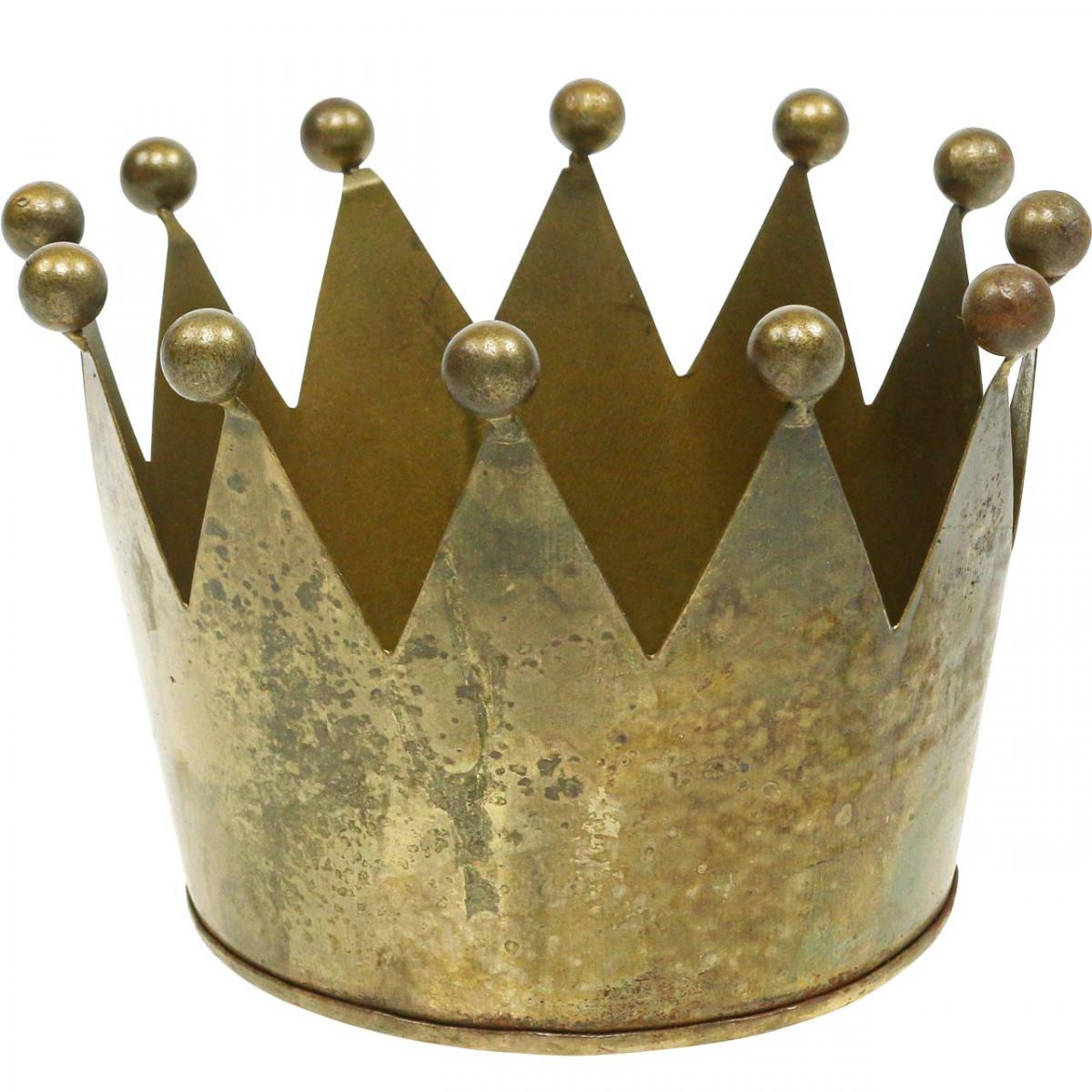 Déco couronne aspect laiton antique décoration de table en métal Ø14cm H9cm