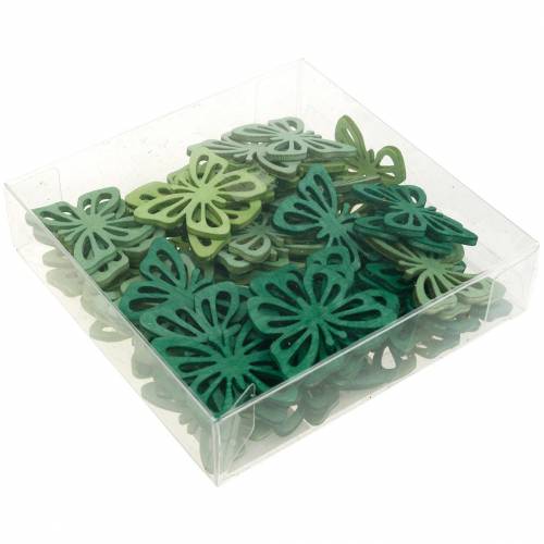Le décor dispersé composé de papillons vous sera livré dans des couleurs assorties, dans une boîte en plastique, dans un lot de 72 pièces. L'ensemble comprend 24 papillons chacun en vert, vert clair et menthe. Chacun des papillons mesure environ 3 centimètres de haut et 4 centimètres de large. L'épaisseur de l'article diffusant est d'environ 2 millimètres.