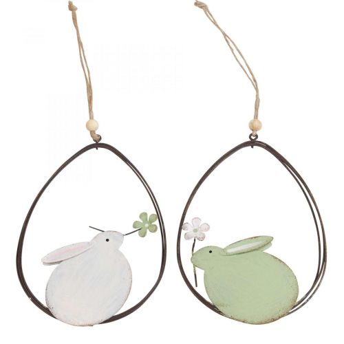 Décoration de fenêtre, lapin de Pâques en métal, décoration à suspendre Pâques 15cm 4pcs vert blanc