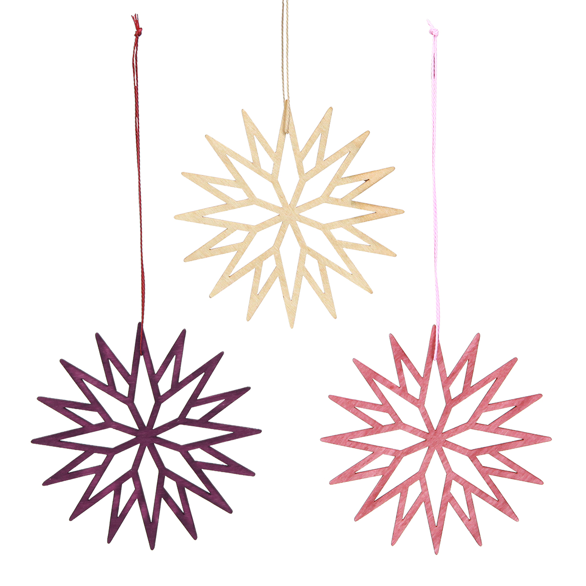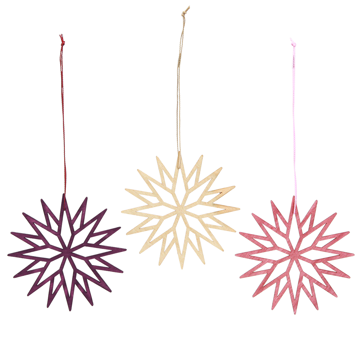Donnez à votre sapin de Noël une touche tendance et naturelle avec nos exquises décorations de sapin de Noël en bois en forme de flocons de neige aux couleurs de baies tendance. Ces éléments décoratifs combinent des détails ornés avec un design scandinave apaisant qui apporteront chaleur et style à votre maison.