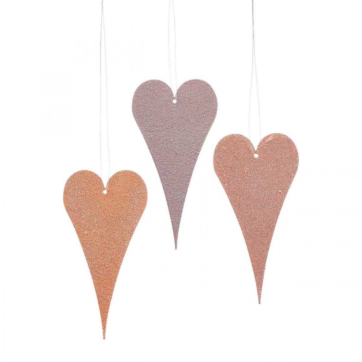Vous recevrez un total de 6 cœurs décoratifs en métal en lot, triés en trois couleurs différentes. Il y a donc deux coeurs décoratifs pêche, saumon et violet d'une hauteur approximative de 10 centimètres.