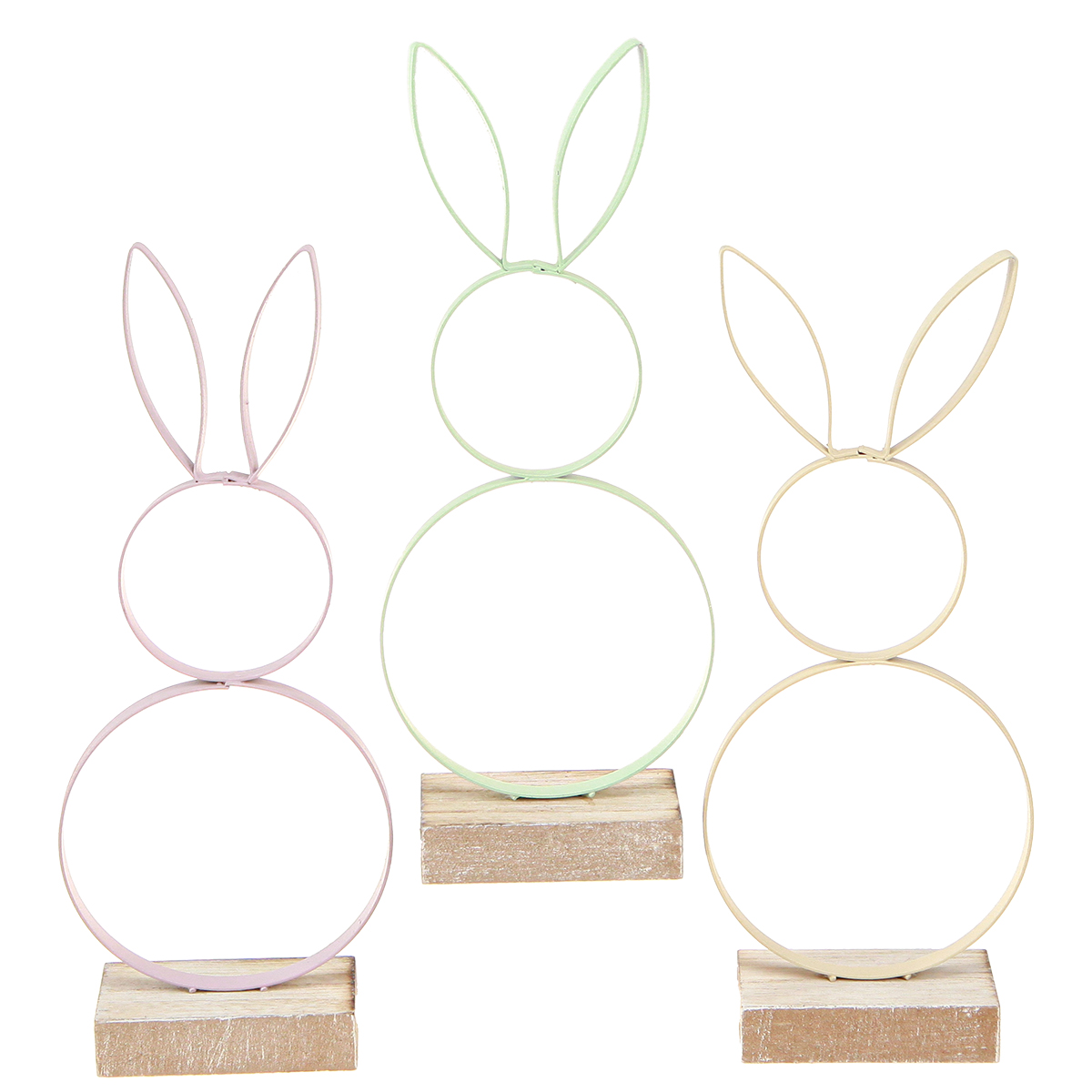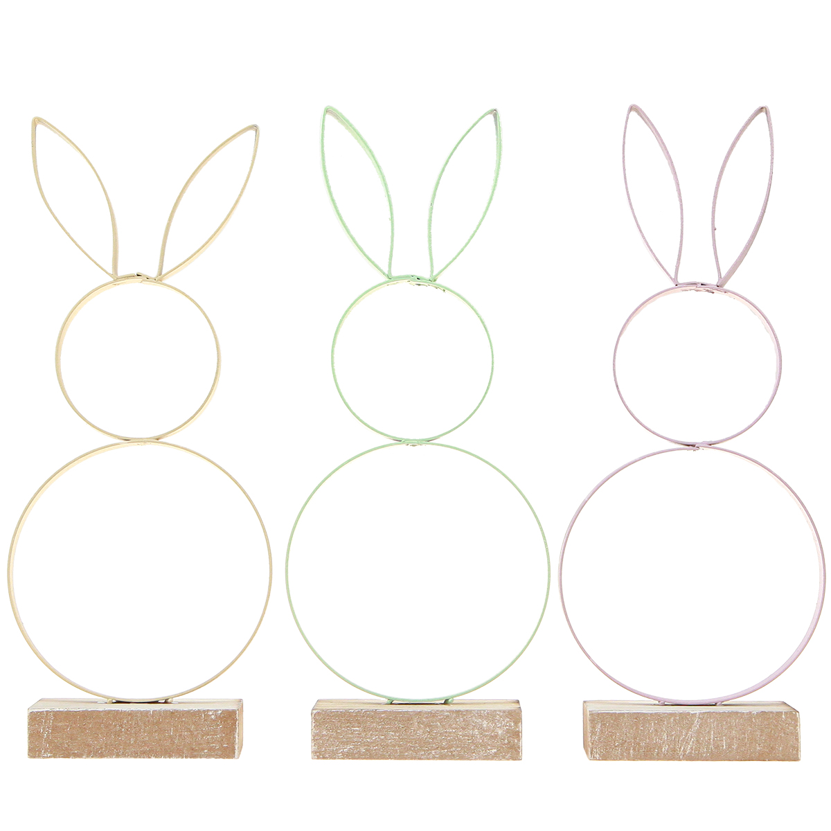 Nom du produit : Décoration Lapin de Pâques Métal Bois Jaune Menthe Rose H21cm 3 Pcs