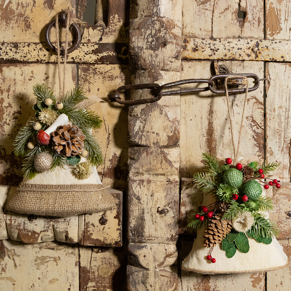 Décoration murale cloche de Noël jute assortie H20cm 2pcs