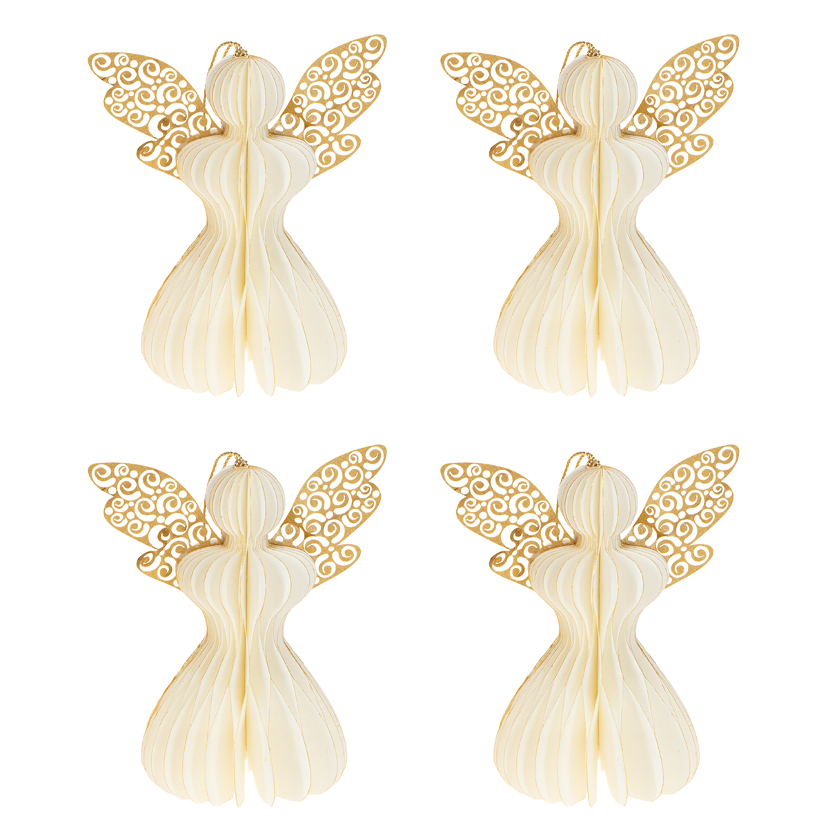 Décorations d'arbre de Noël en papier, pendentifs anges, blanc et or, 12 cm, lot de 4